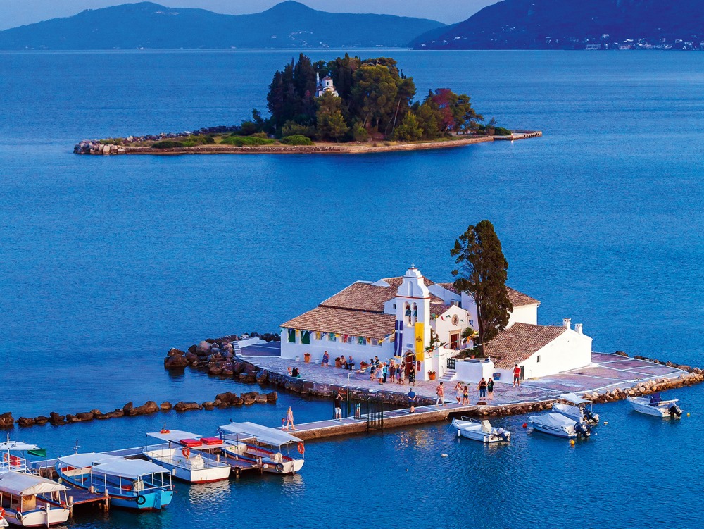 У берегов столицы на крохотном островке, соединенном с Корфу бетонным пирсом, находится белоснежный монастырь Влахерна с часовней Девы Марии XVII века, где хранится чудотворная икона Божьей Матери. Рядом, в нескольких минутах на лодке, – остров Понтикониси с монастырем Пантократор XII–XIII веков, где пишут красивые иконы в византийском стиле. По легенде, Понтикониси – это корабль Одиссея, который Посейдон, разгневавшись, превратил в сушу. Сегодня монастырь скрывают деревья. А два островка стали визитными карточками Корфу.
