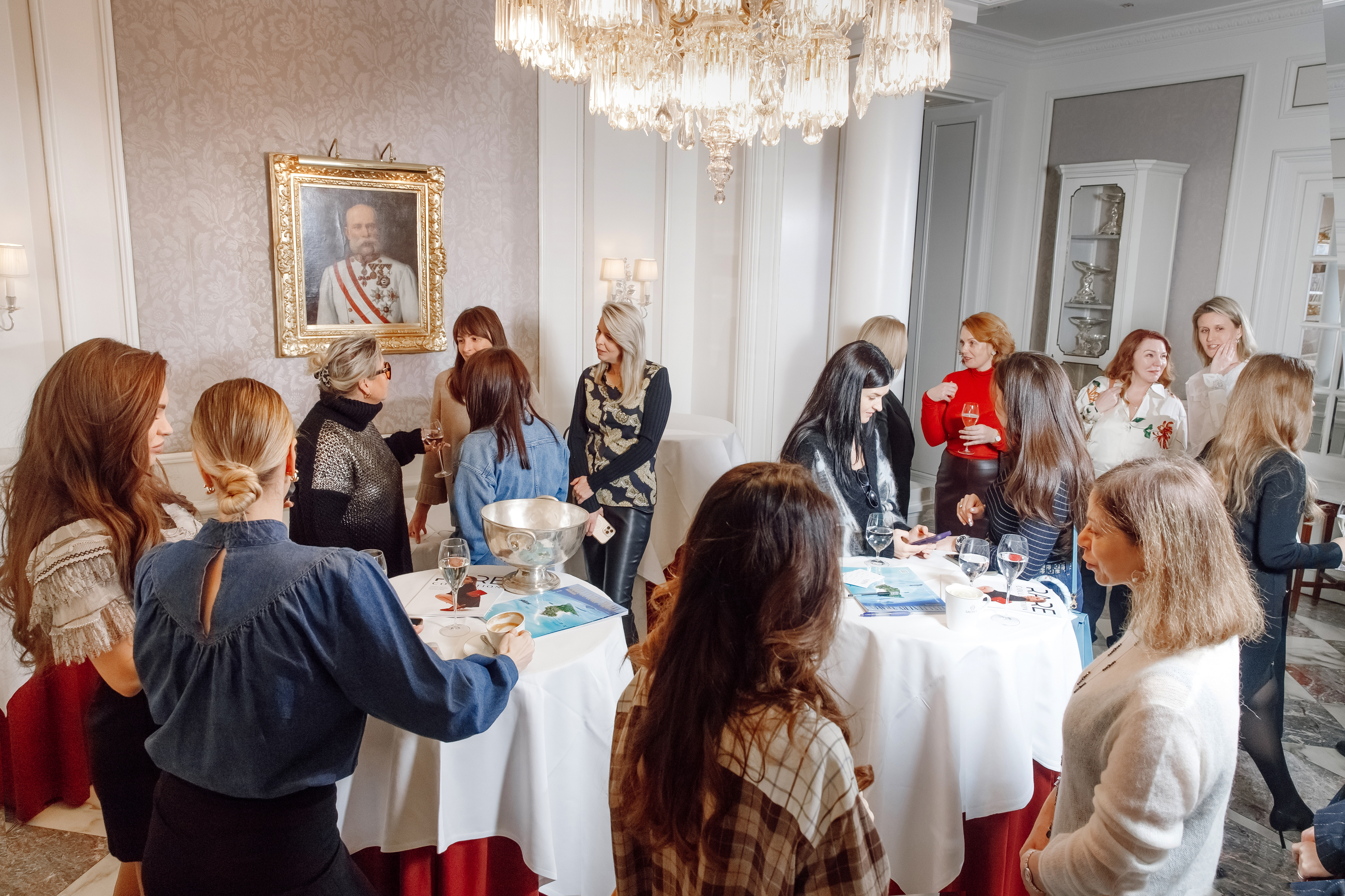 Отель Sacher, известный своим аристократическим шармом и богатой историей, стал идеальным местом для проведения этого утреннего мероприятия, подчеркнув элегантность и высокий статус события.