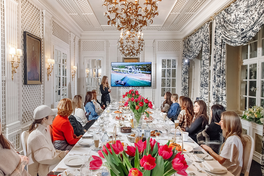 30 января 2025 года в венском отеле Sacher состоялось мероприятие, посвященное обновленному турецкому курорту Gloria Golf Resort. На завтраке присутствовали 18 дам, которые первыми узнали о завершении масштабной реновации отеля.