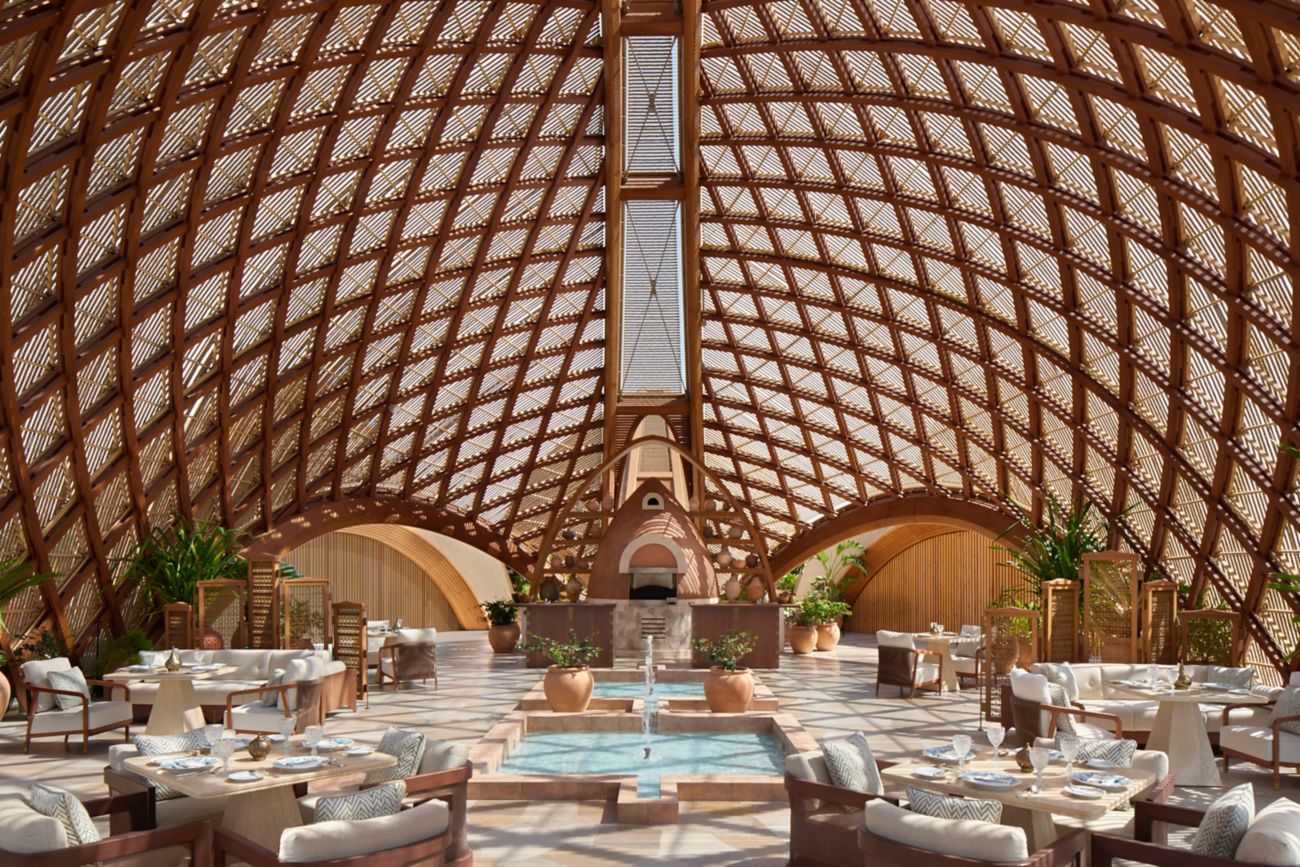 В 20 минутах от аэропорта расположен семейный отель Desert Rock Resort – The Red Sea по проекту Oppenheim Architecture – международного бюро с 25-летним опытом. Его виллы с интерьерами в песочной гамме кажутся естественным продолжением горно-пустынного ландшафта Эль-Хиджаз: они, подобно пещерным кельям, вырезаны в скале, располагаются в ущельях, нависают над обрывами или уютно устроились в долине. Каждая вилла просторная, панорамная, с собственным бассейном и батлером. В отеле четыре ресторана и бара, включая гастрономический Nyra под управлением турецкого шеф-повара со звездой “Мишлен” Osman Sezener. Здесь применяют как древние, первобытные традиции обжаривания и копчения блюд на огне, так и новые техники, используя продукты местного происхождения. За процессом можно наблюдать на открытой кухне. Авангардный безалкогольный бар Mica предлагает инновационные моктейли и закуски. Для придания необычного вкуса напиткам используют такие приемы, как ферментация, консервирование, маринование и копчение, подают травяные эликсиры и закуски. Бар открыт до часу ночи, приглашая любоваться звездным небом у костра. Главный ресторан Basalt открыт на завтраки с меню для поклонников ЗОЖ, местной кухни и тех, кто привык ни в чем себе не отказывать на отдыхе. В течение дня здесь подают блюда современной индийской кухни, дополняя трапезы живыми выступлениями, музыкальными и танцевальными номерами и фейерверками, что придает атмосфере эффект театральности. Расположенный у главного бассейна Wadi встречает блюдами перуанской кухни под диджейские сеты.