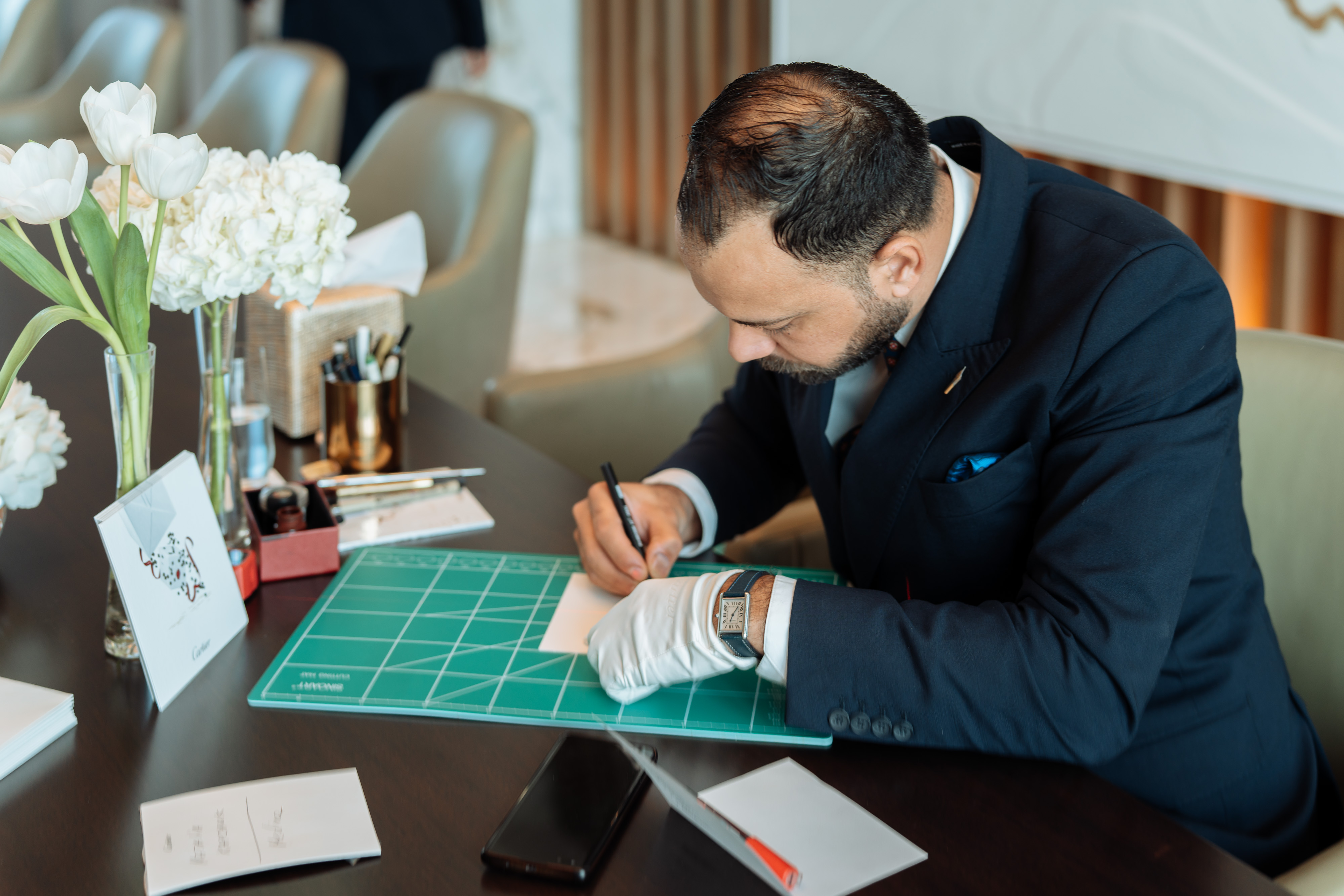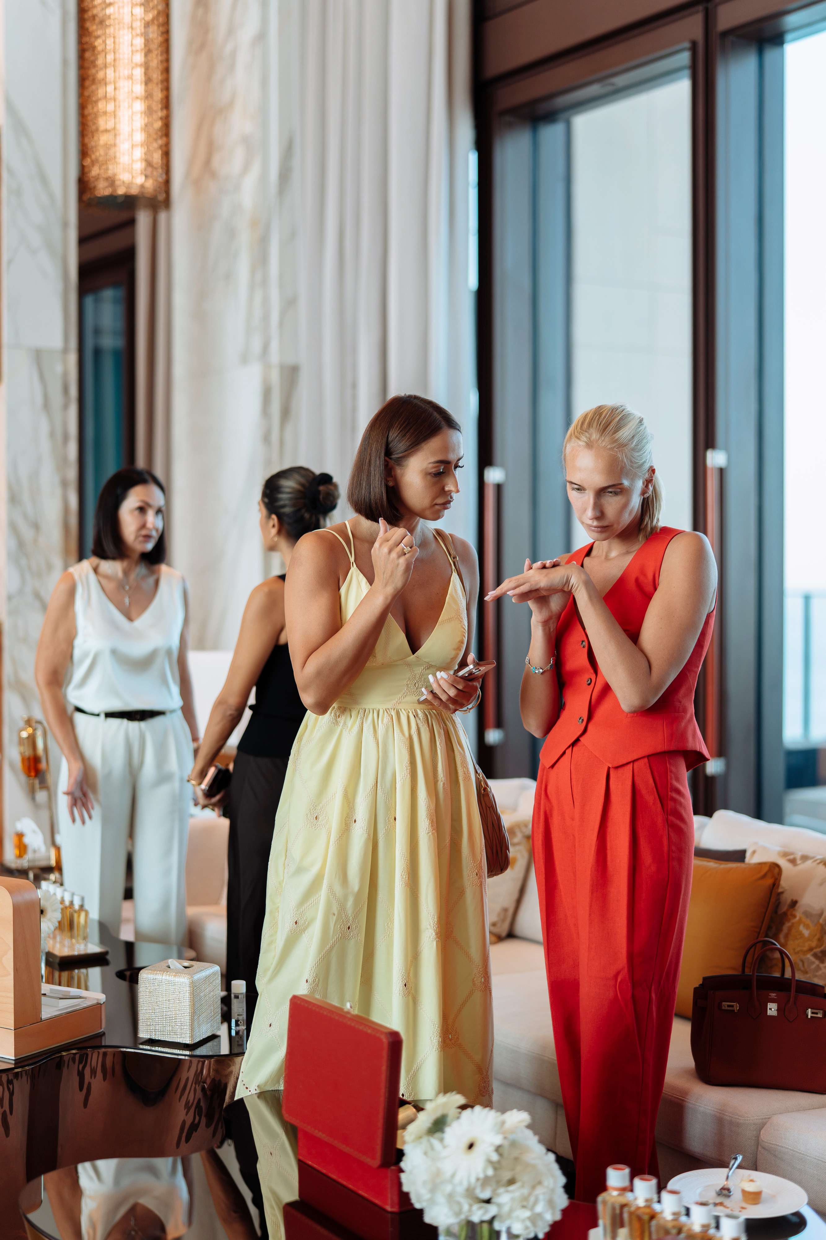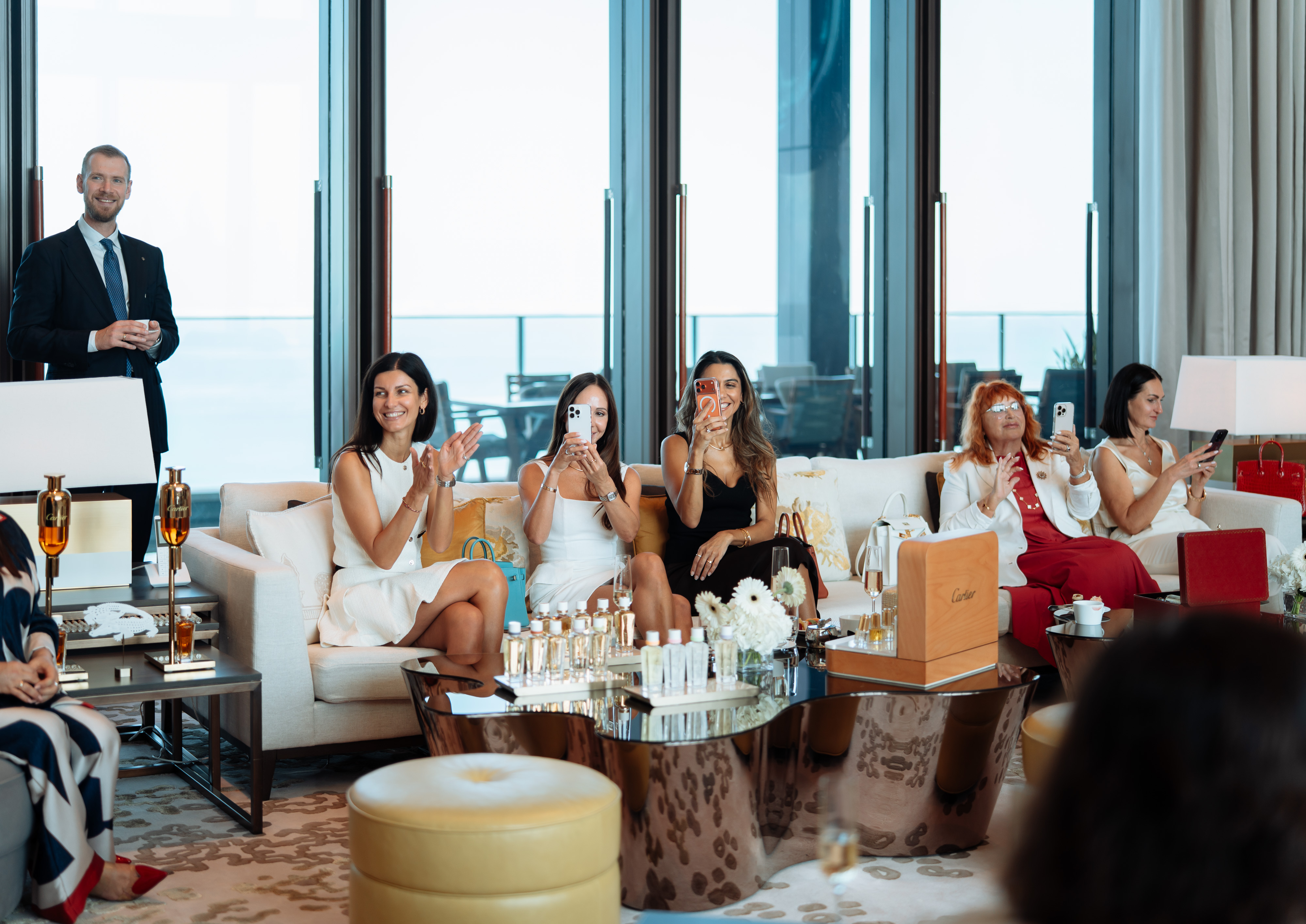 Партнёром вечера стал Cartier. Участники познакомились с ароматами и маслами бренда, тестировали продукты, общались с мастерами дома и открывали для себя новые сенсорные ритуалы. Отдельным украшением вечера стала работа главного художника Cartier, который создавал золотые персонализированные надписи — уникальные сувениры, которые гости забрали с собой.