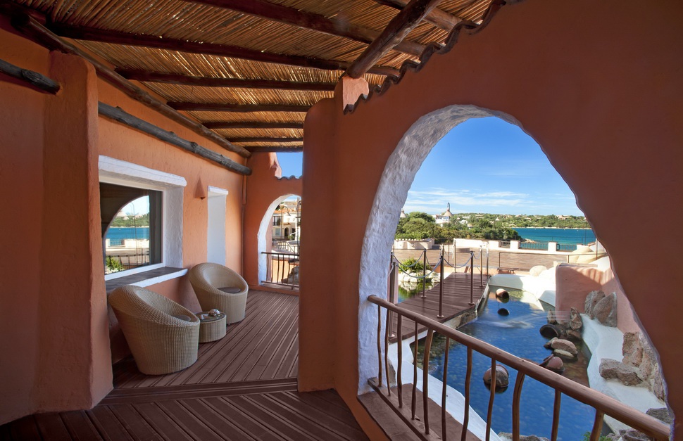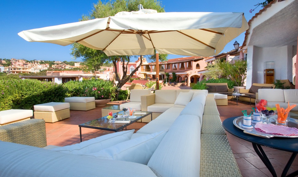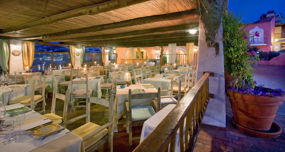 На затишній дерев'яній веранді ресторану Pergola можна пообідати та помилуватися видом на гавань та центральну площу Порто-Черво.