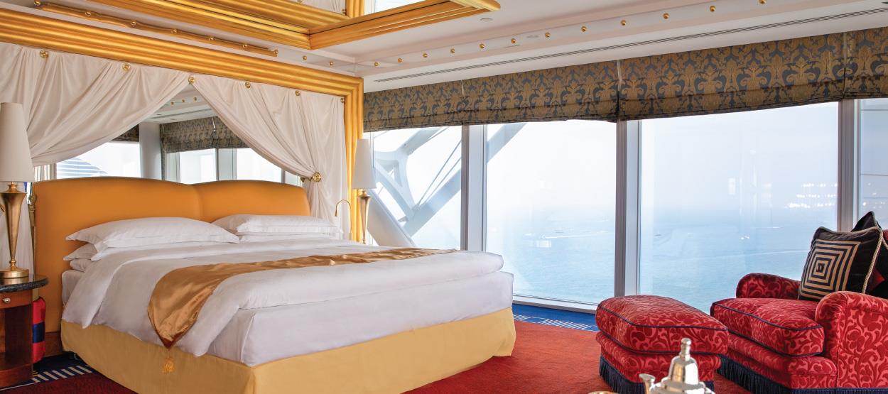 У Burj Al Arab гості можуть насолодитися розкішшю в аравійському стилі, сервісом, який відповідає світовим стандартам категорії 5 зірок. Вишукані та ексклюзивні матеріали, які використовуються в дизайні номерів, перенесуть Вас у розкіш султанських палаців, занурюючи в казкову атмосферу Дубая.
