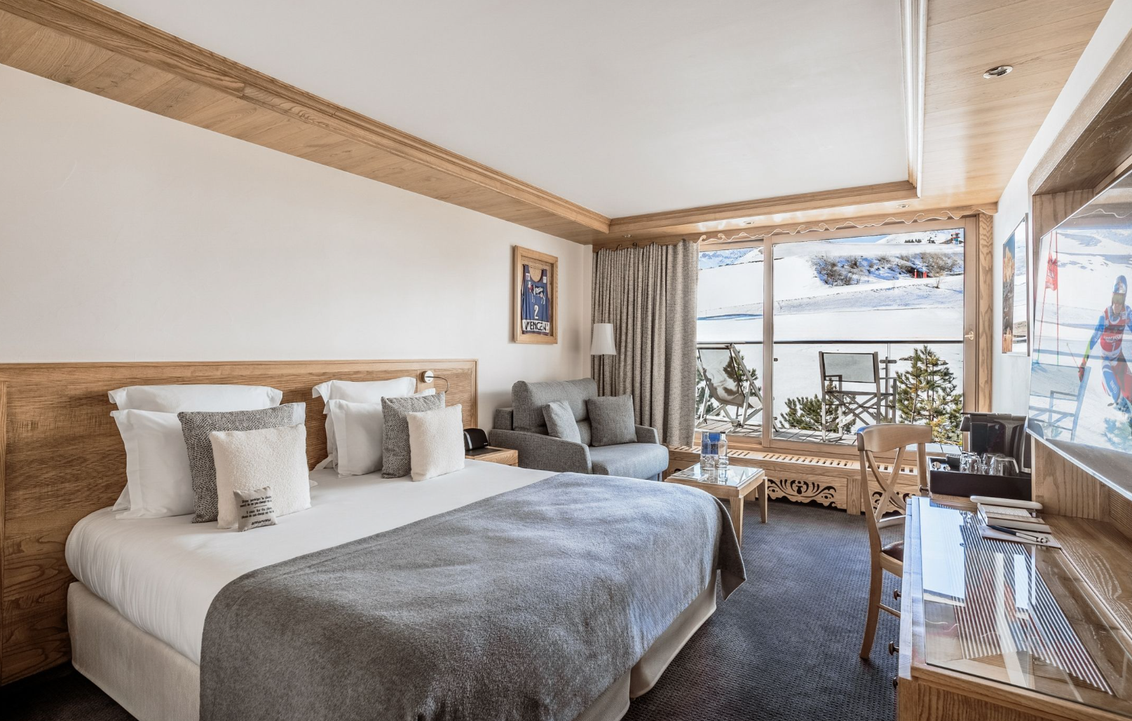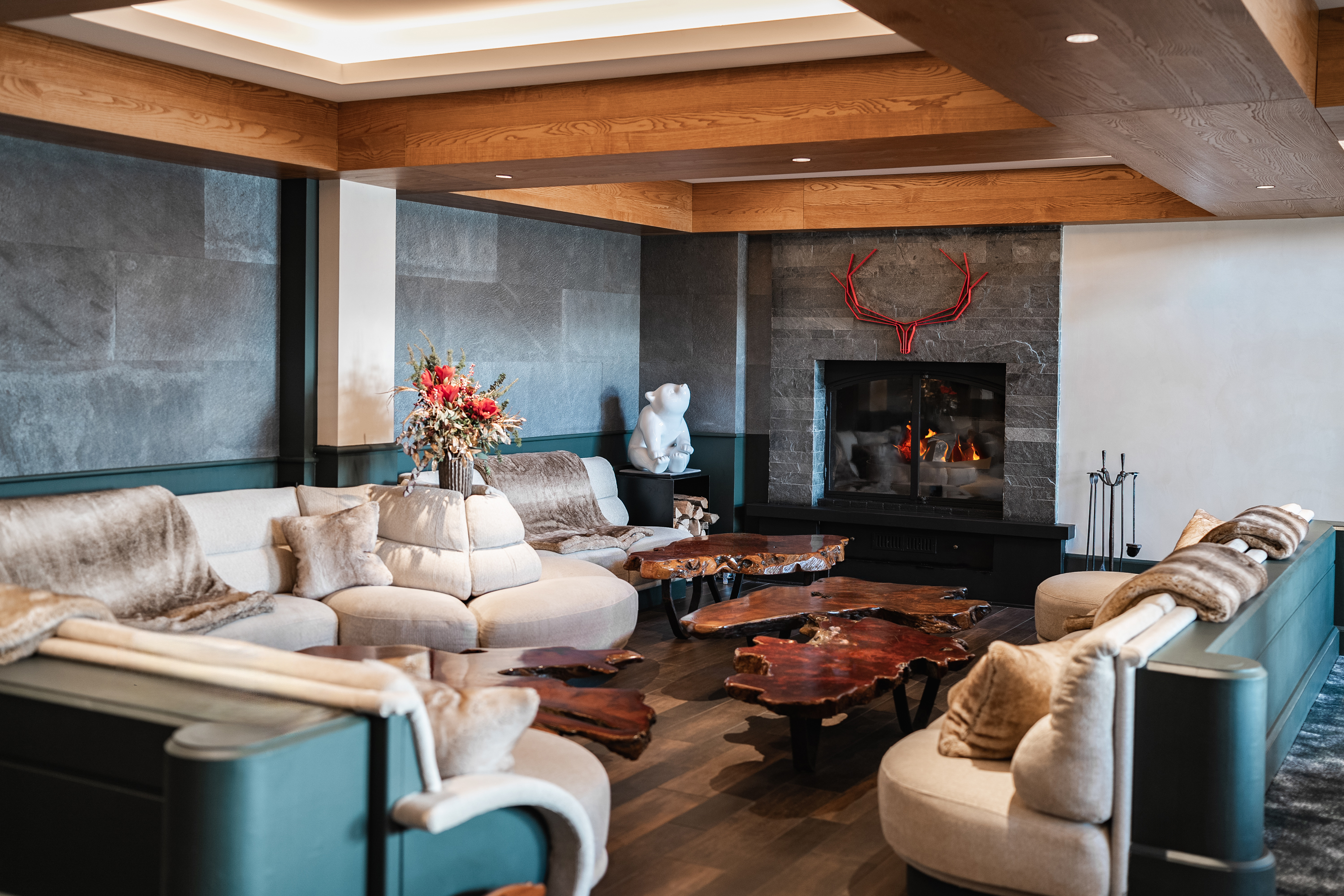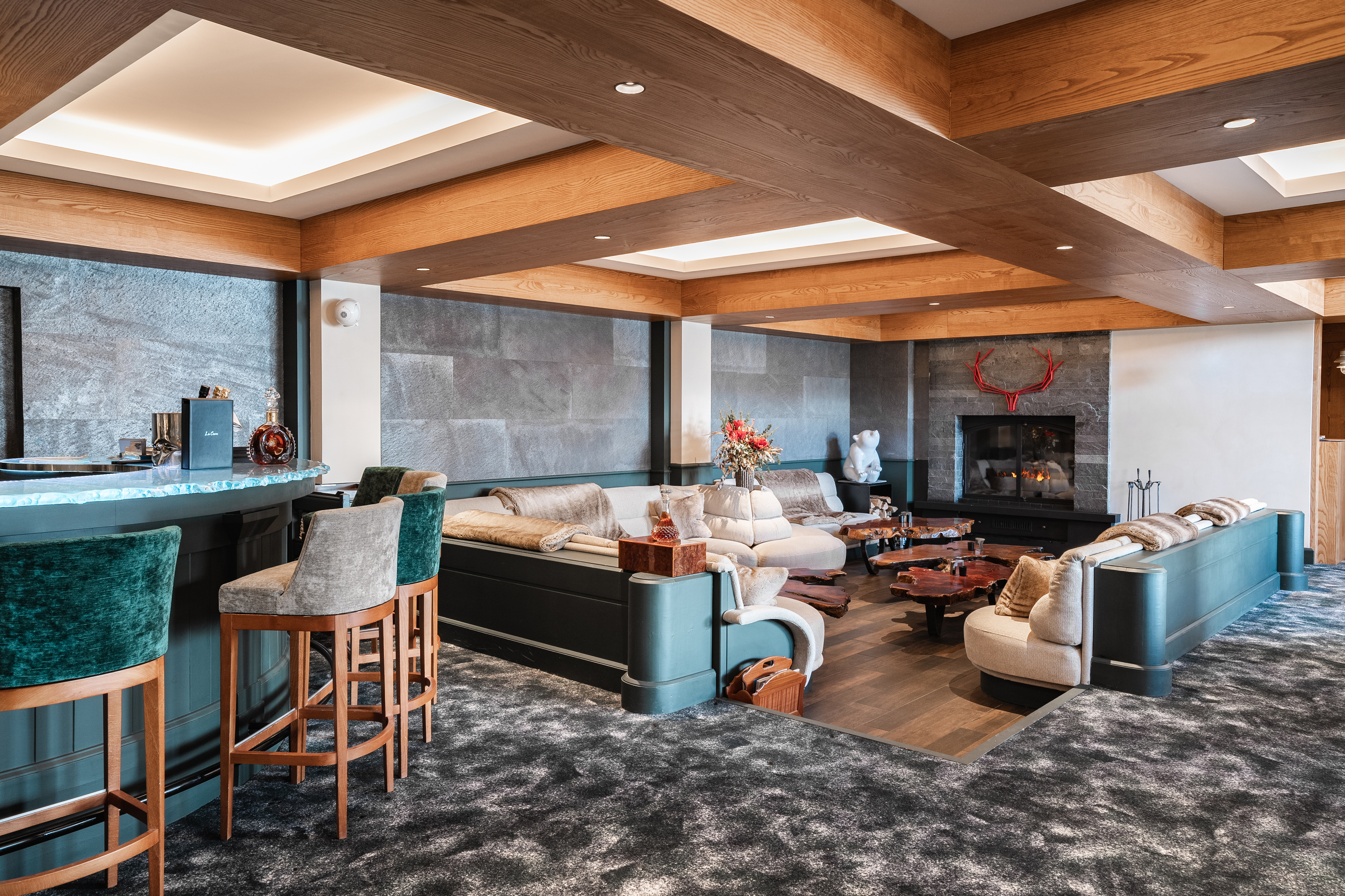 РЕСТОРАН LA FÈRMA - Цей вишуканий, затишний і теплий притулок на 20 осіб нагадує сучасний савойський фермерський будинок, прикрашений синіми зелігами, вовною та деревом, що підкреслює савойські страви та забезпечує ідеальний баланс між престижем та традиціями.