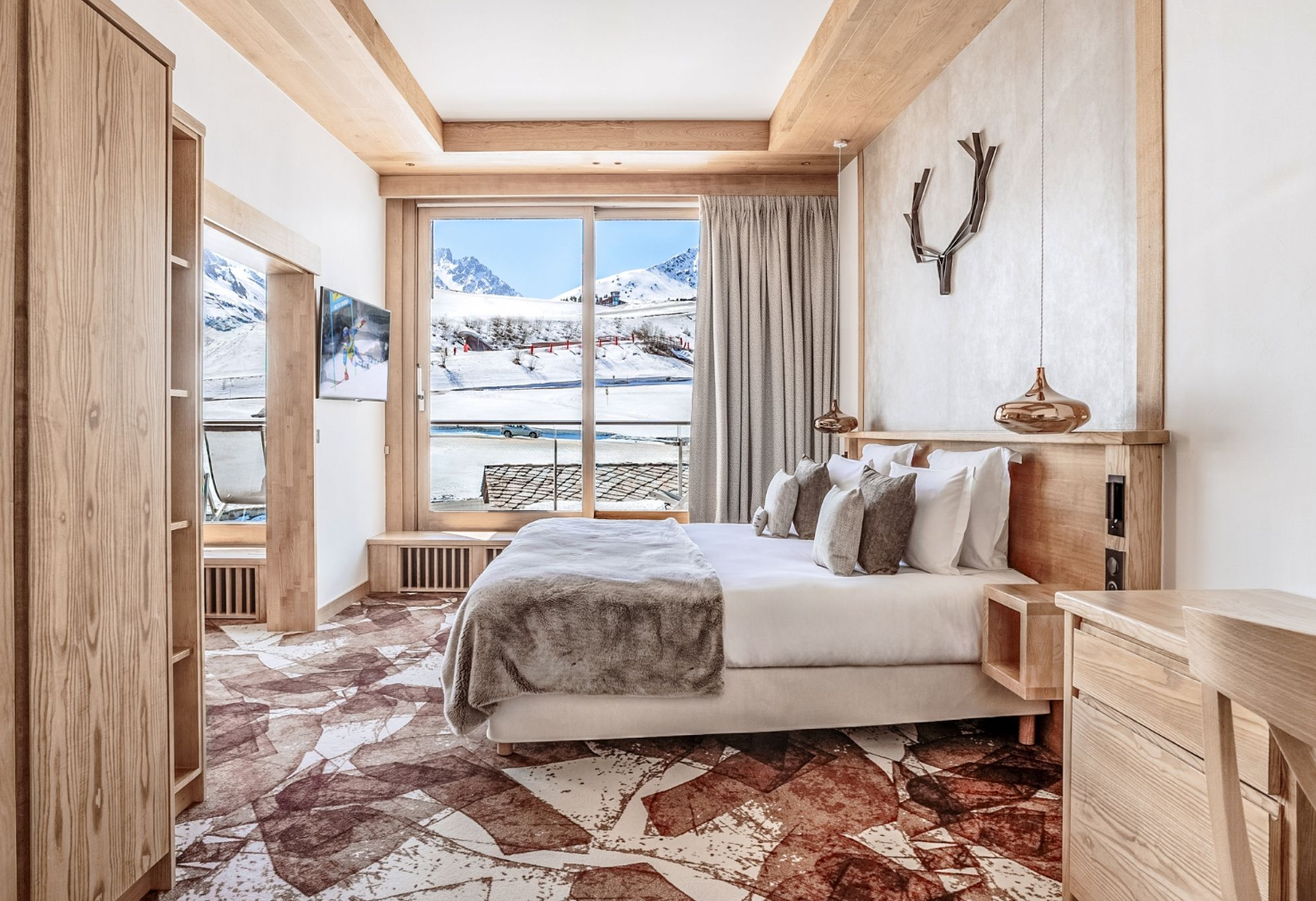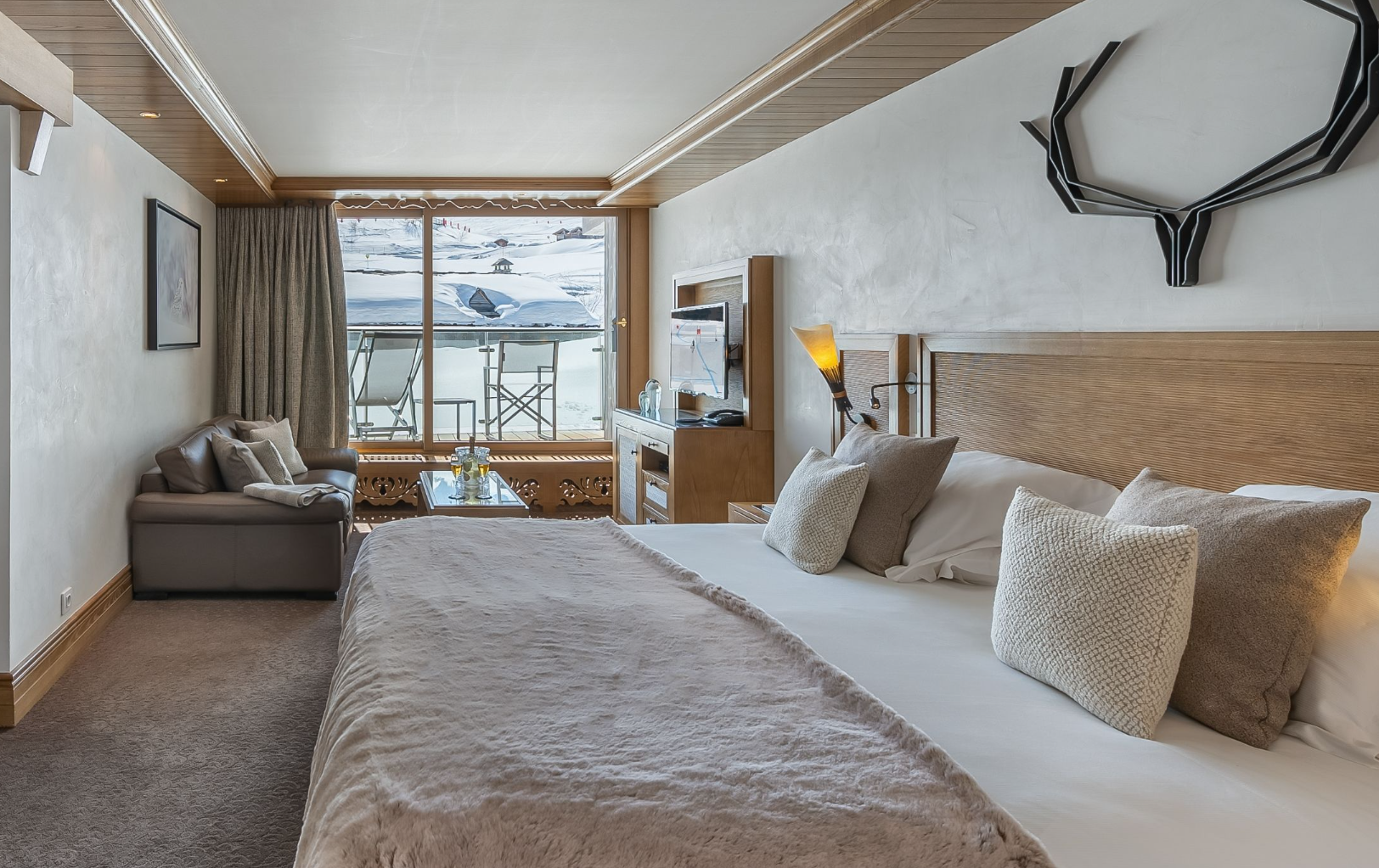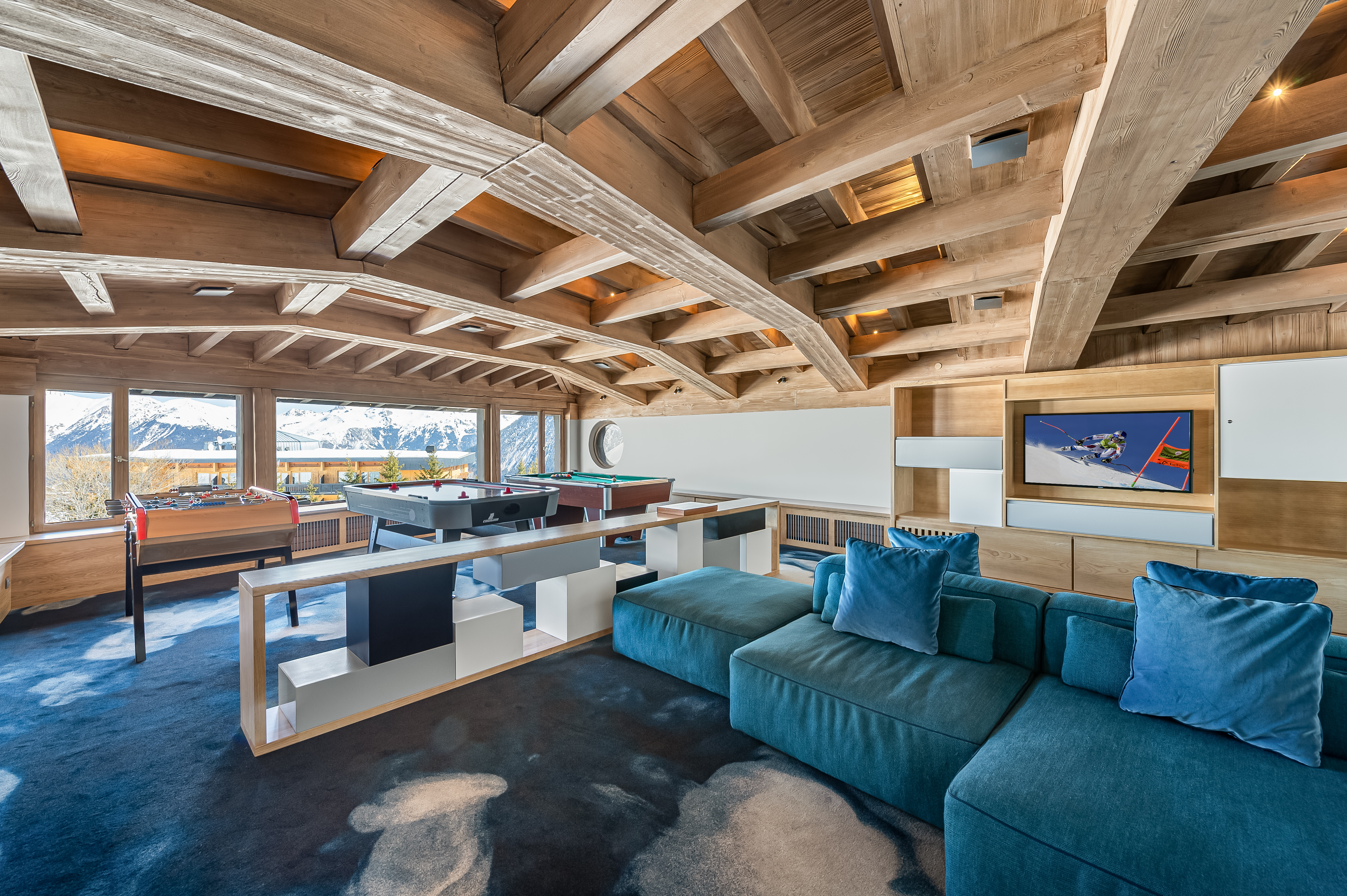 РЕСТОРАН LA FÈRMA - Цей вишуканий, затишний і теплий притулок на 20 осіб нагадує сучасний савойський фермерський будинок, прикрашений синіми зелігами, вовною та деревом, що підкреслює савойські страви та забезпечує ідеальний баланс між престижем та традиціями.