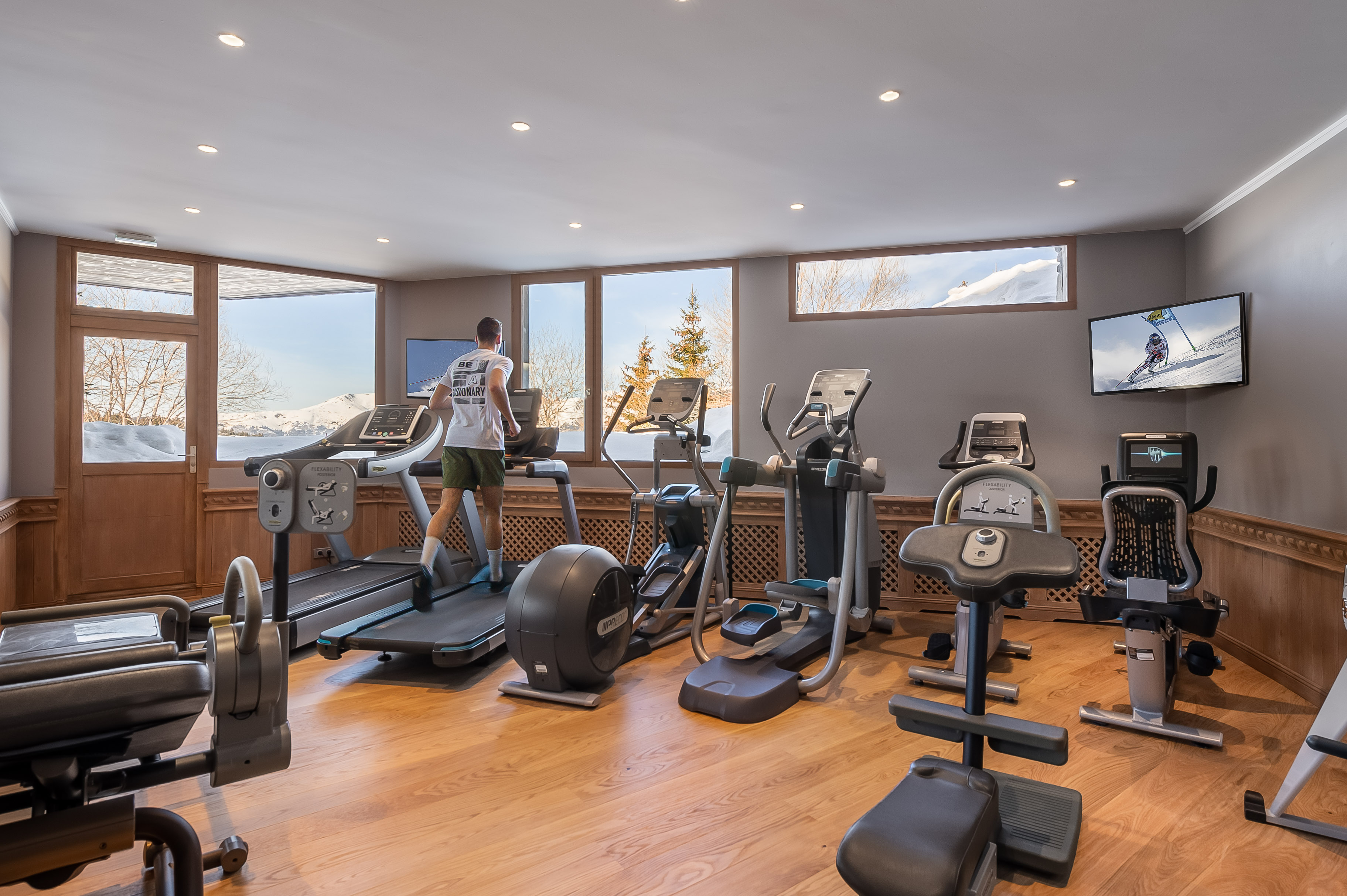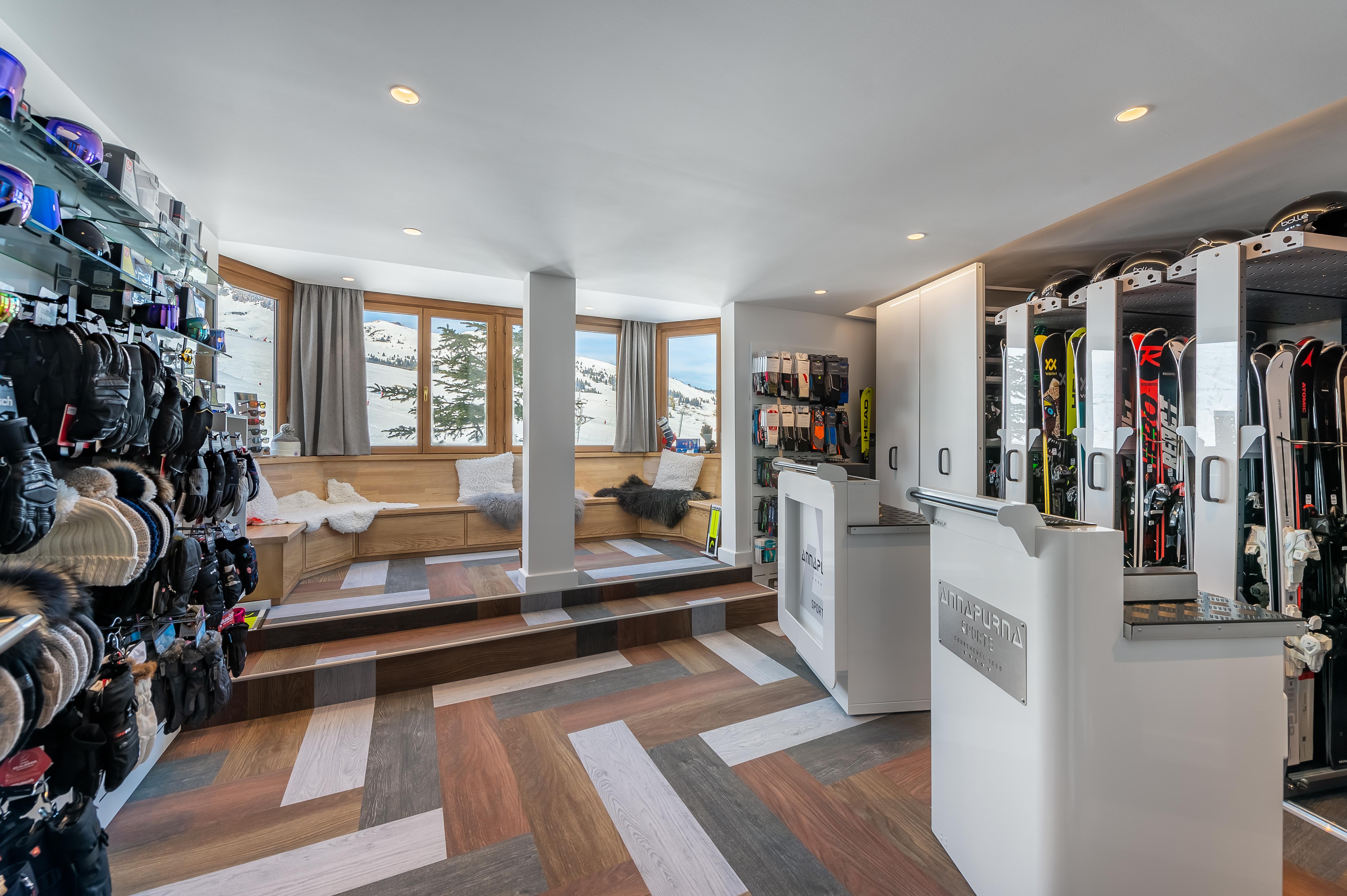 Лижна кімната, 40 квадратних метрів (430 квадратних футів) Обладнана просторими, опалювальними, першокласними індивідуальними шафками, гості можуть з комфортом одягнути черевики, поки лижний паркувальник готує їхні лижі та палиці до початку забігу. Після повернення паркувальник повертає спорядження в шафки та виконує всі необхідні налаштування.