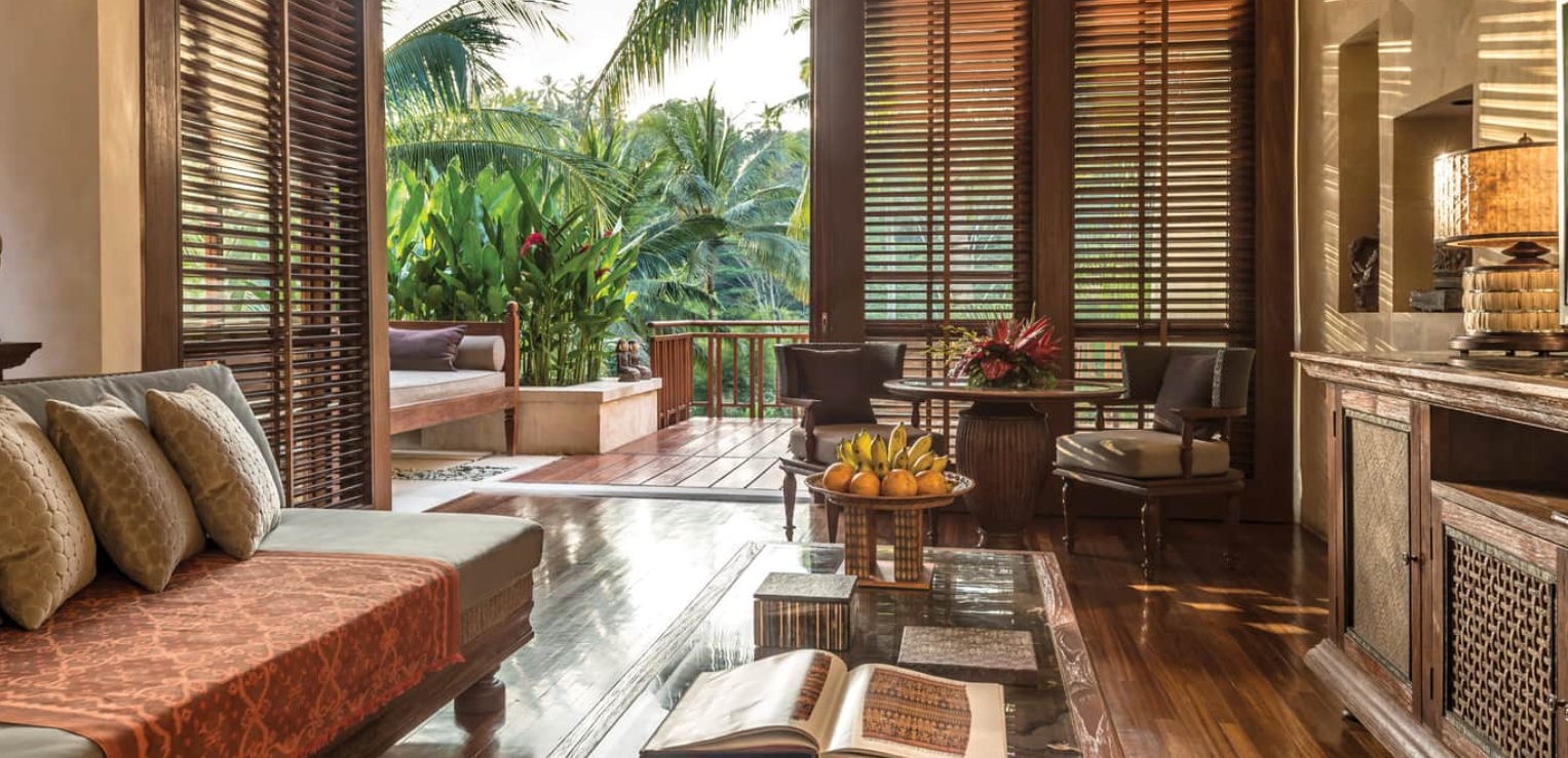 Серед густих джунглів, рисових полів, мальовничих ставків з лотосами, біля стрімкої річки Ayung і недалеко від культурного центру Балі - міста Убуд розташувалися комфортабельні, виконані в індонезійському стилі, вілли Four Seasons Resort Bali at Sayan. У просторих номерах – елегантні інтер'єри, з оздобленням з тикового дерева, витонченими меблями ручної роботи, килимами та прикрасами роботи місцевих майстрів, з терас відкривається чудовий краєвид на тропічні сади та річку.