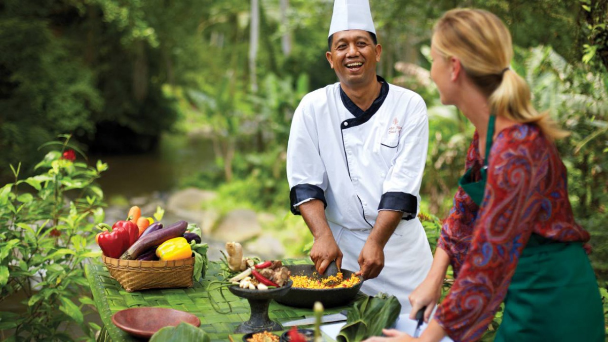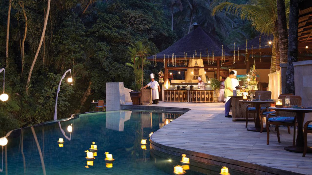 У елегантному ресторані Ayung Terrace, з відкритою терасою над річкою, пропонуються страви сучасної азіатської та індонезійської кухонь, в Riverside Cafe, розташованому біля річки, запропоновані легкі закуски та свіжоспечена піца. У стильному барі Jati подаються легкі закуски, післяобідній чай з апетитною випічкою та різноманітністю тропічних коктейлів.
