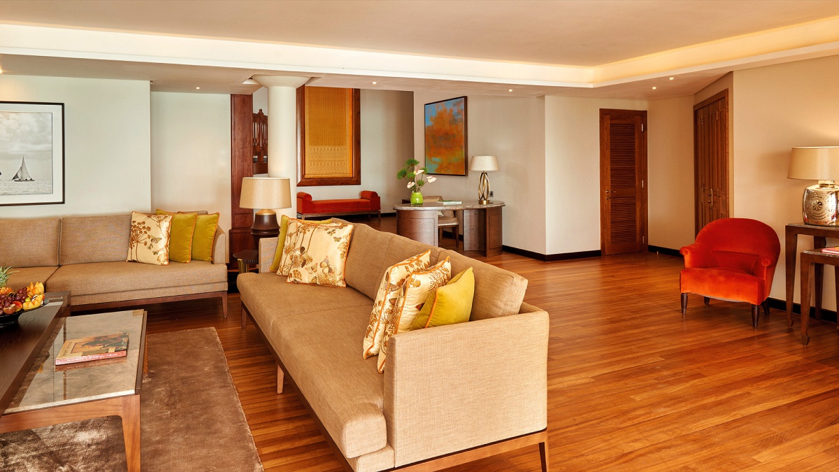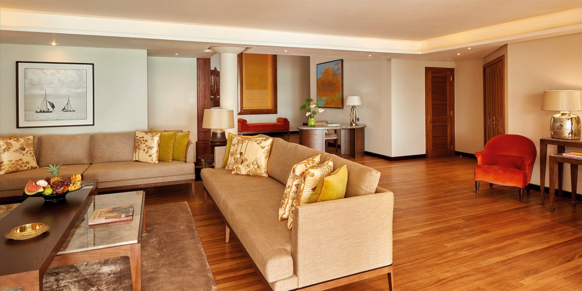 Розкішний сучасний люкс площею 128 кв.м має елегантні дерев'яні меблі, мармурову підлогу і чудовий декор з текстилю. Інтер'єр номера виконаний у перлово-сірій та помаранчевій палітрі. Люкс складається зі спальні, просторої вітальні з обіднім куточком, зоною відпочинку і виходом на пляж, ванної кімнати, обладнаної потопленою ванною і розкішним видом на тропічні сади, душа, окремого туалету, гардеробної та величезної мебльованої тераси. Люкс розрахований на 2 дорослих та 1 дитину.