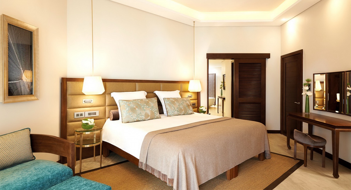 Площа номерів цієї категорії – 85 кв.м, розташовані вони на другому поверсі та мають індивідуальні сходи, що ведуть до саду або на пляж. У номері є спальня та окрема зона відпочинку. В елегантному інтер'єрі ідеально поєднуються свіжі кольори бірюзи та зелені з ніжними бежевими відтінками, що робить атмосферу яскравою та «живою». Проживання 2 дорослих + 1 дитина.