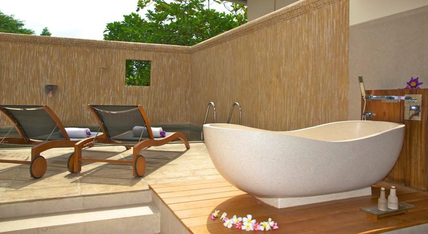 Saman villa suites з басейном (118 кв. м): двоступеневе число. На першому поверсі: 2 Тераси (одна з відкритим особистим басейном, одна з виснаженою відкритою зоною відпочинку), вітальня, шафа, санвузол з ванною кімнатою і душовою кабіною у відкритому повітрі. На другому поверсі балкон з обідньою зоною в відкритому повітрі, спальнею, ванною кімнатою з душем. Вид на океан.