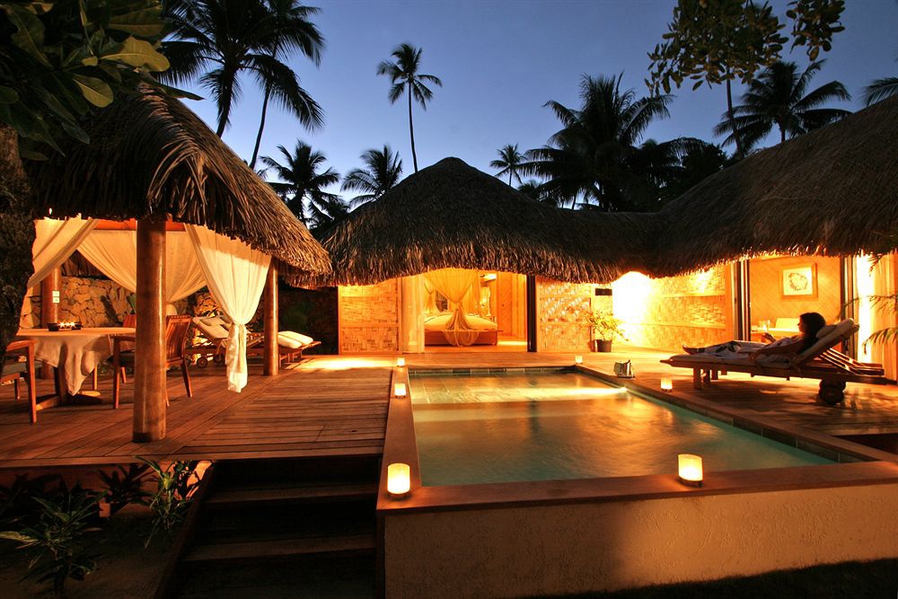 Всього 60 бункерів, в тому числі 48 Owerwater Suites of 34 Taha'a Overwater Bungalows, 6 Sunset Overwater Bungalows і 8 Bora Bora Overwater Bungalows. На узбережжі комплексу 12 Beach Suite.Пляж Вілла (200 кв. м) - складається з simplic вітальня з ліжком, спальнею, санвузлом і простирадленою терасою з обіднім набором (пошта, стільці і стельовий вентилятор), має приватний сад і приватний басейн.