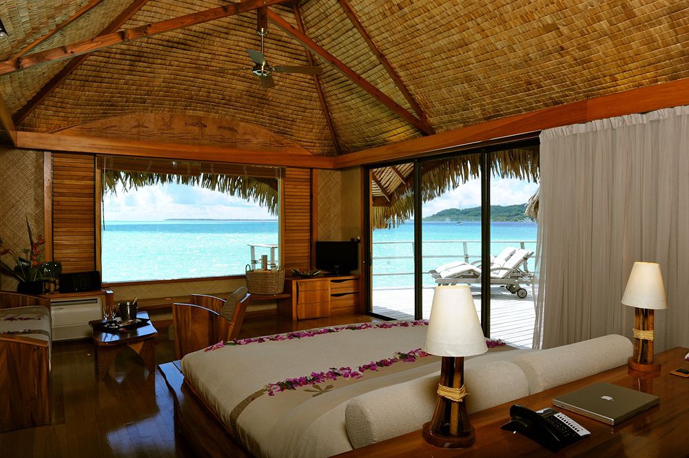 Бора Бора Бунгало(100 квадратних метрів) - з видом на острів Бора Бора, складається з вітальні, в поєднанні з спальнею, ванної кімнати з окремим туалетом і танною терасою з лагуною вниз.