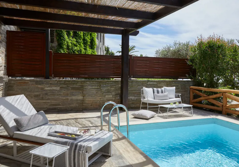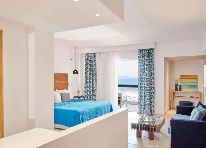 Цей люкс площею близько 75 м2 пропонує справді вишуканий досвід із захоплюючим краєвидом на яскраві води Егейського моря. Простора головна спальня є відокремленим і комфортним притулком, що дозволяє вам стильно розслабитися і відпочити.