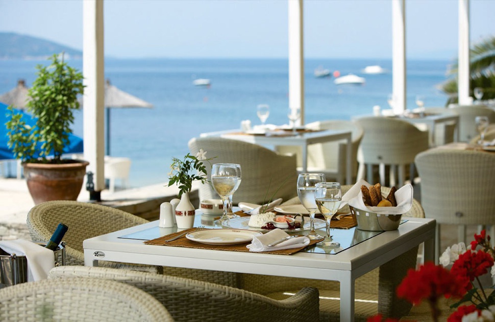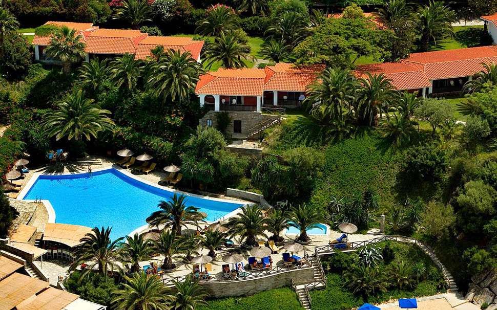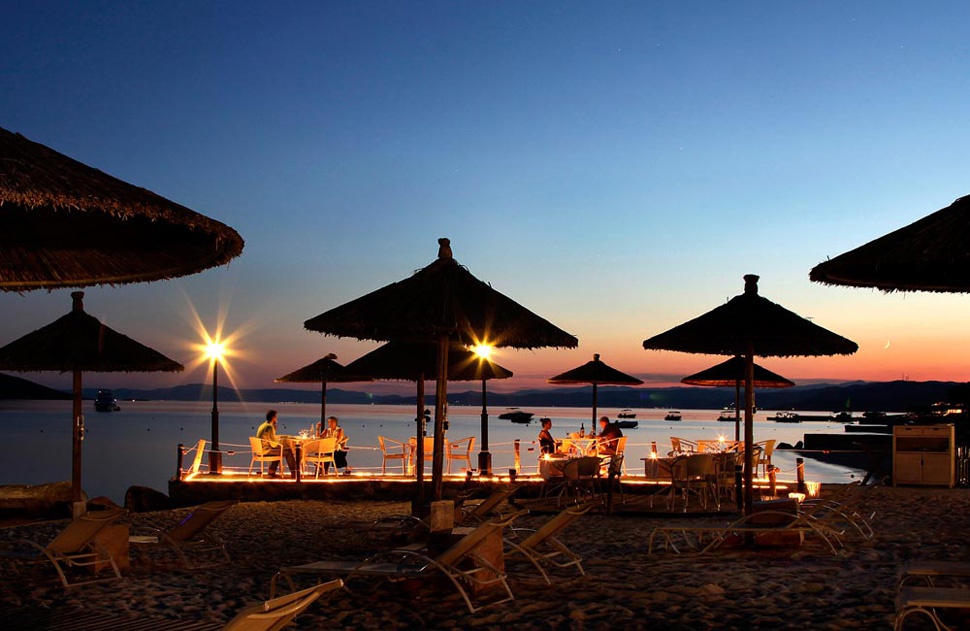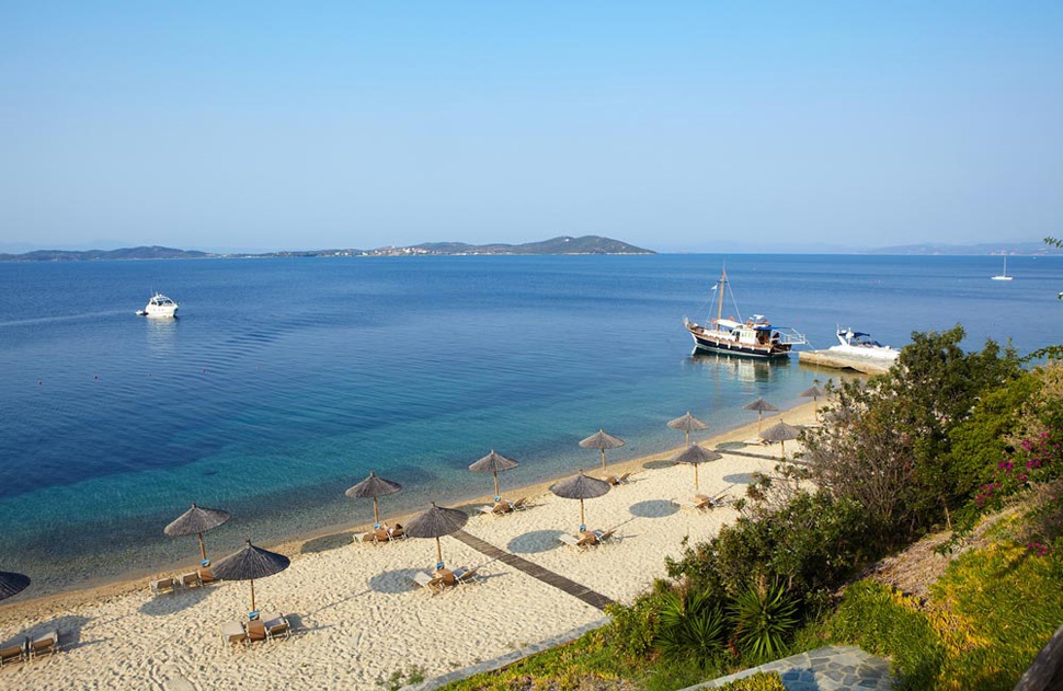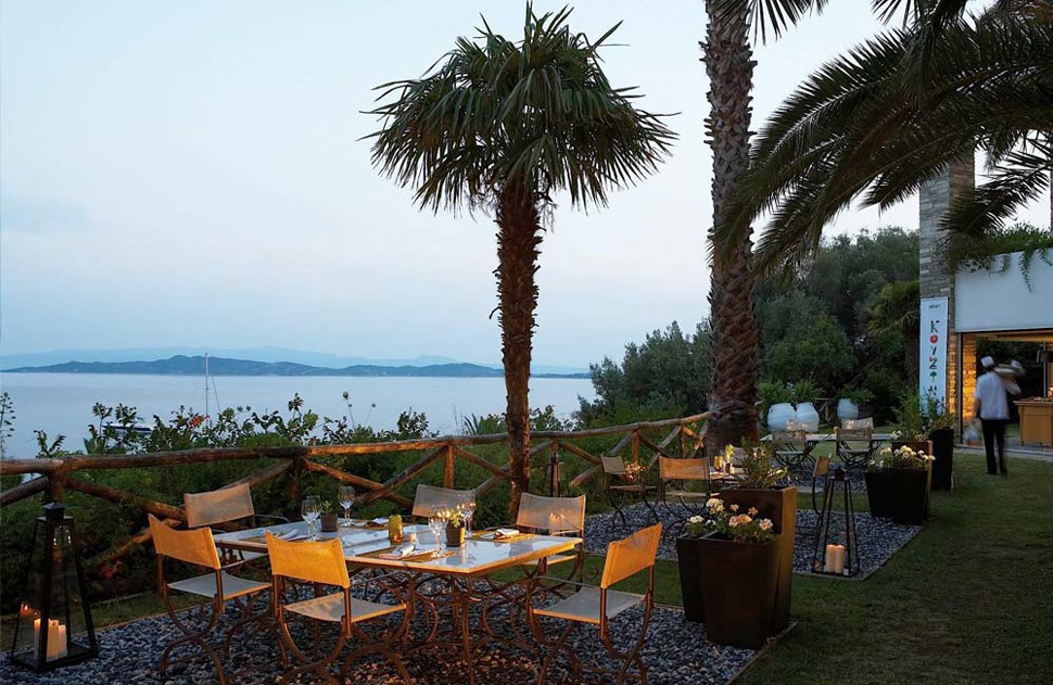 На березі прозорого і кришталево чистого Егейського моря, біля пляжу із золотавим піском, по сусідству з горою Афон з 20 діючими монастирями, серед зелених пагорбів і дивовижних видів на блакитну затоку Sigiticos, розташувався розкішний готель Eagles Palace Hotel & Spa з приватними білосніжними пляжами. Eagles Palace Hotel & Spa, заснований сім'єю Торнівоукас (Tornivoukas), і відкритий щорічно з Великодня до кінця жовтня, поєднує ексклюзивність, елегантність внутрішнього оздоблення, дбайливе ставлення до природи та бездоганний сервіс. У ресторанах та барах готелю пропонується вишукане меню міжнародної та середземноморської кухні в супроводі багатої карти грецьких вин найкращих марок. Також до послуг гостей чудовий СПА центр, сучасний фітнес-зал, зали для банкетів і засідань, бізнес-центр, пишний сад з пальмами, оливами та соснами.