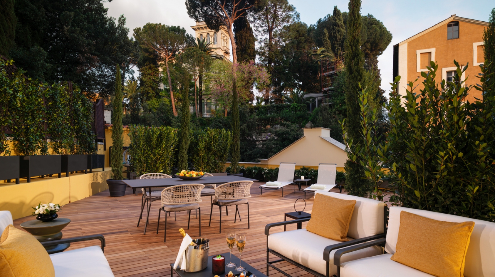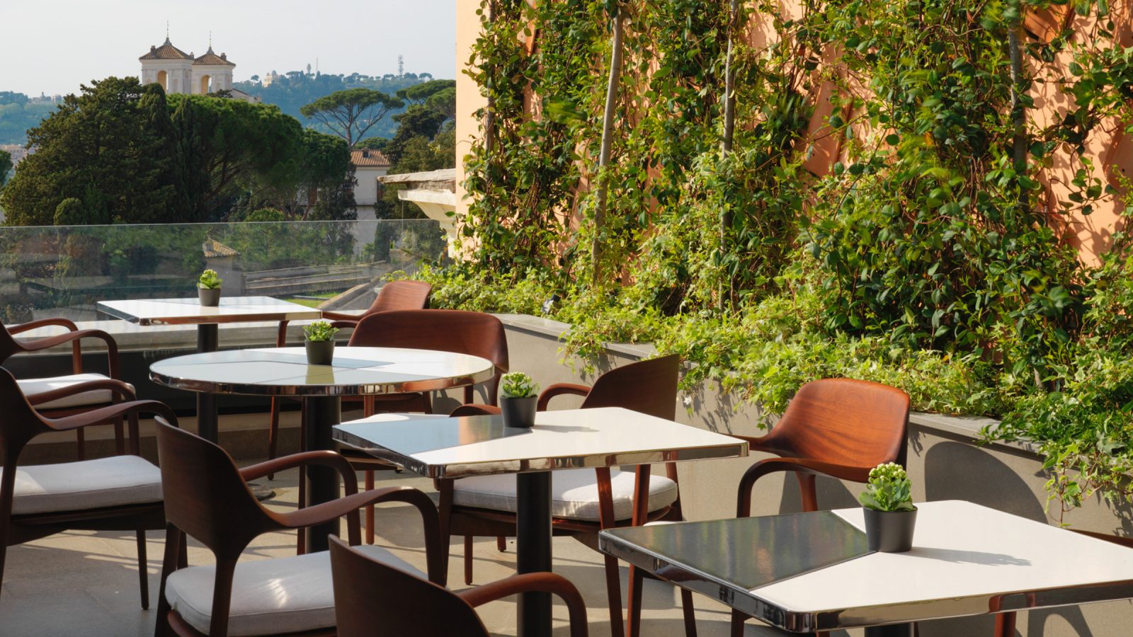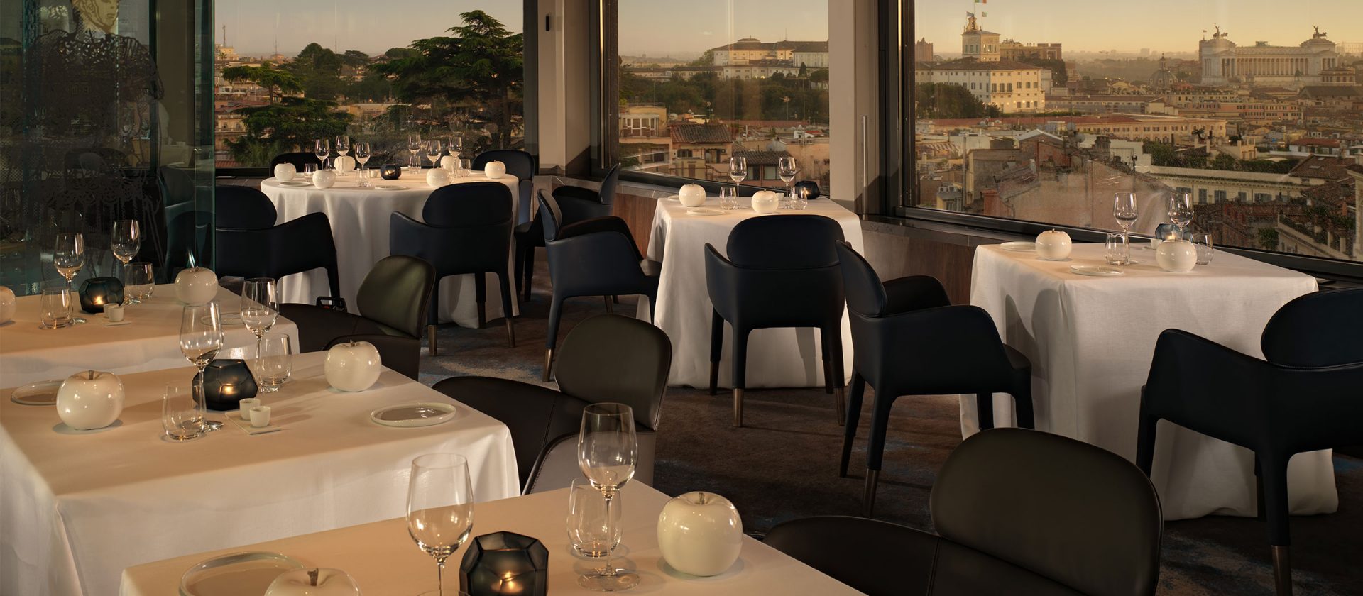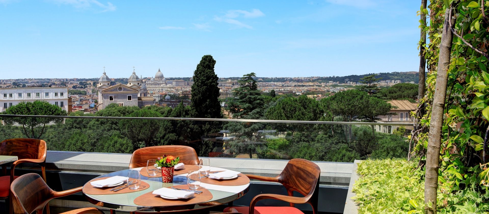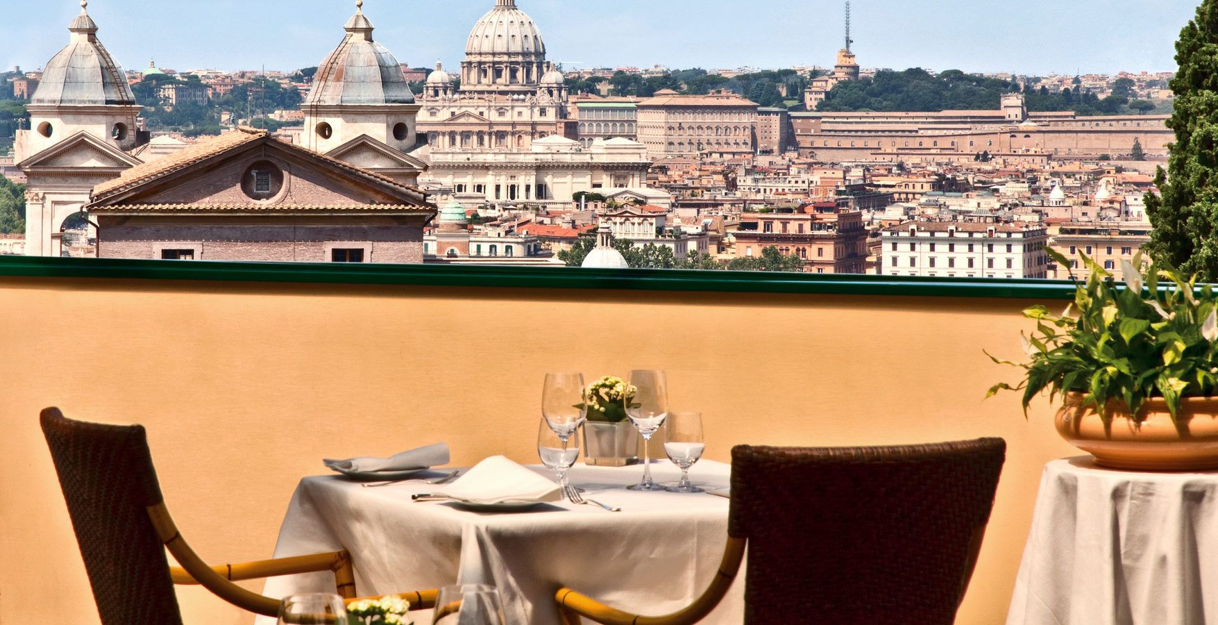 На шостому поверсі готелю Eden розташувався ресторан La Terrazza двічі нагороджений зіркою Michelin, де можна не лише скуштувати вишукані страви італійської кухні, але й насолодитися чудовим панорамним краєвидом на Вічне місто. Меню ресторану повністю оновлюється двічі на рік і щосезону вводяться нові страви. Поряд з a la carte пропонуються інші види меню, наприклад, тематичні меню з 4 страв, макробіотичне меню та римське. Винна карта ресторану містить понад 300 найменувань, кожен десерт подається із певним вином.