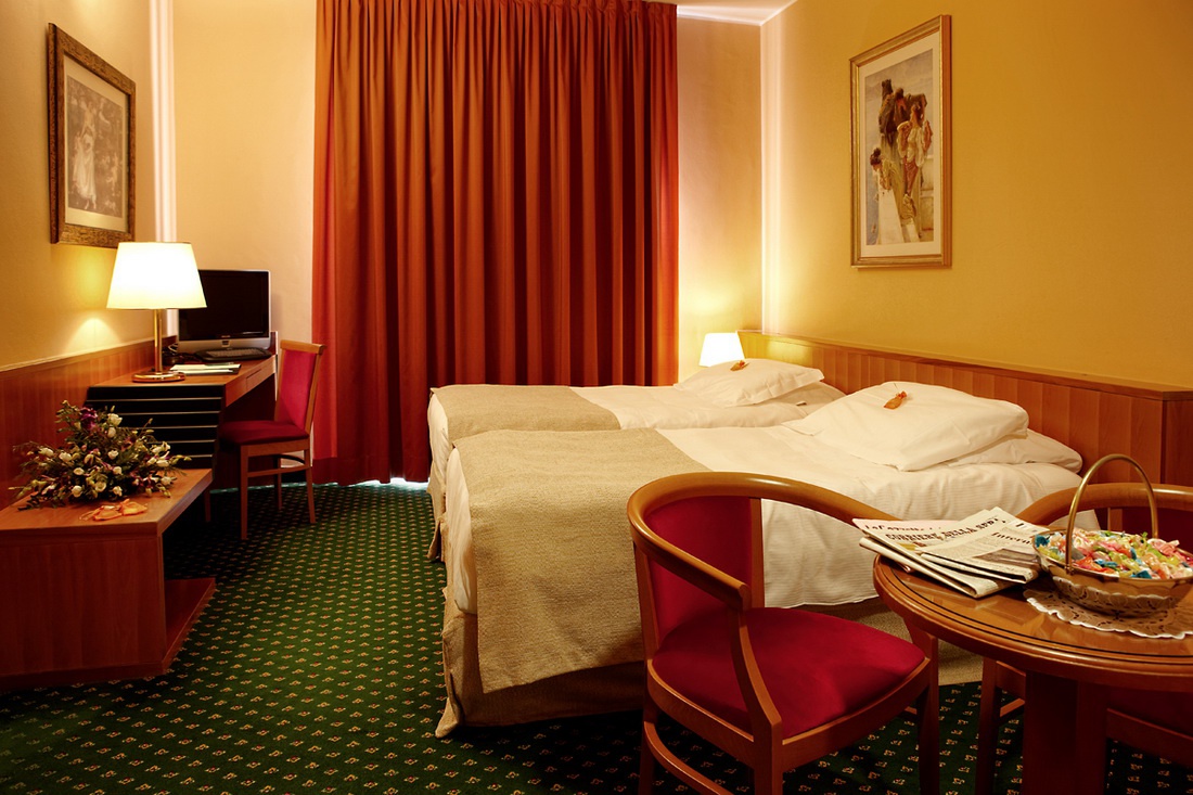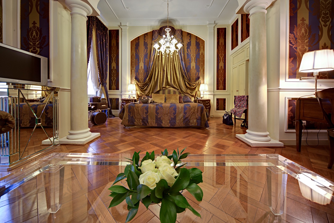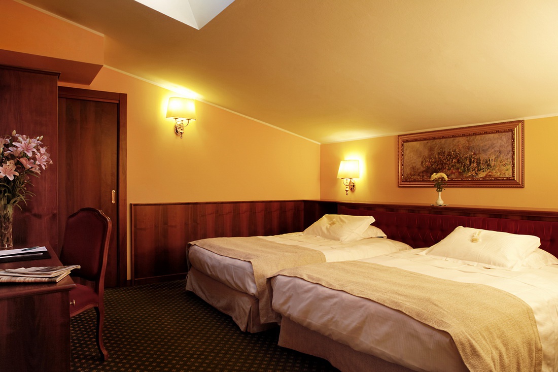 Номери Делюкс наповнені старовинними меблями, а стіни вкриті дорогоцінними гобеленами яскравих кольорів із золотими рамами. Підлога варіюється від килимів, які поєднуються з гобеленами, створюючи приємний, гармонійний колірний ефект, до паркету, покритого лаком вручну.