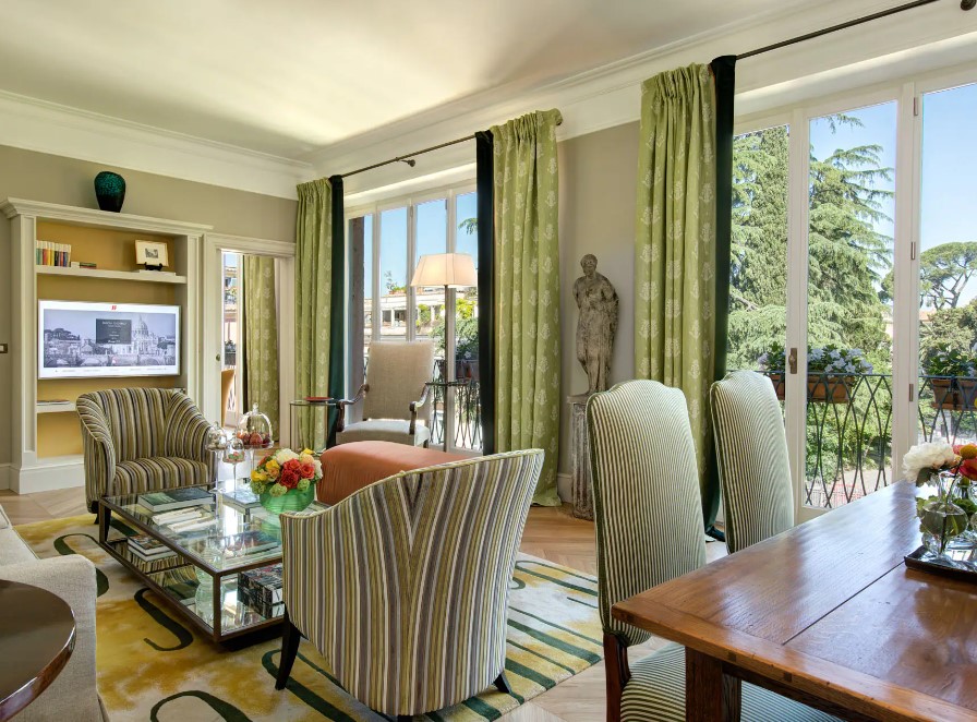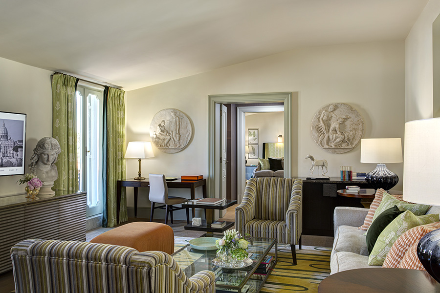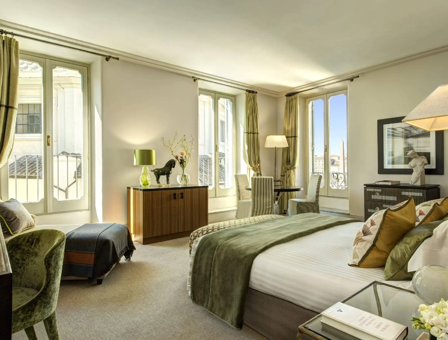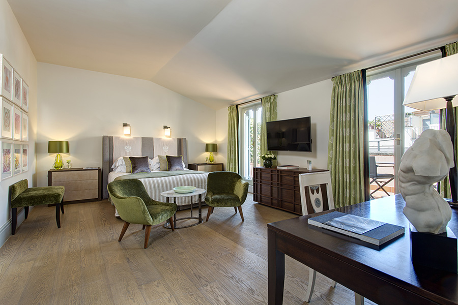 Розкішні суперлюкси ідеально втілюють у себе спадщину та яскравість Риму з класичними творами мистецтва та розкішними шпалерами, багатою колірною палітрою та сучасними предметами мистецтва. Елегантні вікна виходять на чарівний історичний центр Риму, а інтер’єри прикрашені вишуканими м’якими меблями. Просторі ванні кімнати, деякі з яких мають окрему душову кабіну, є ідеальним місцем, щоб розслабитися та побалувати себе.