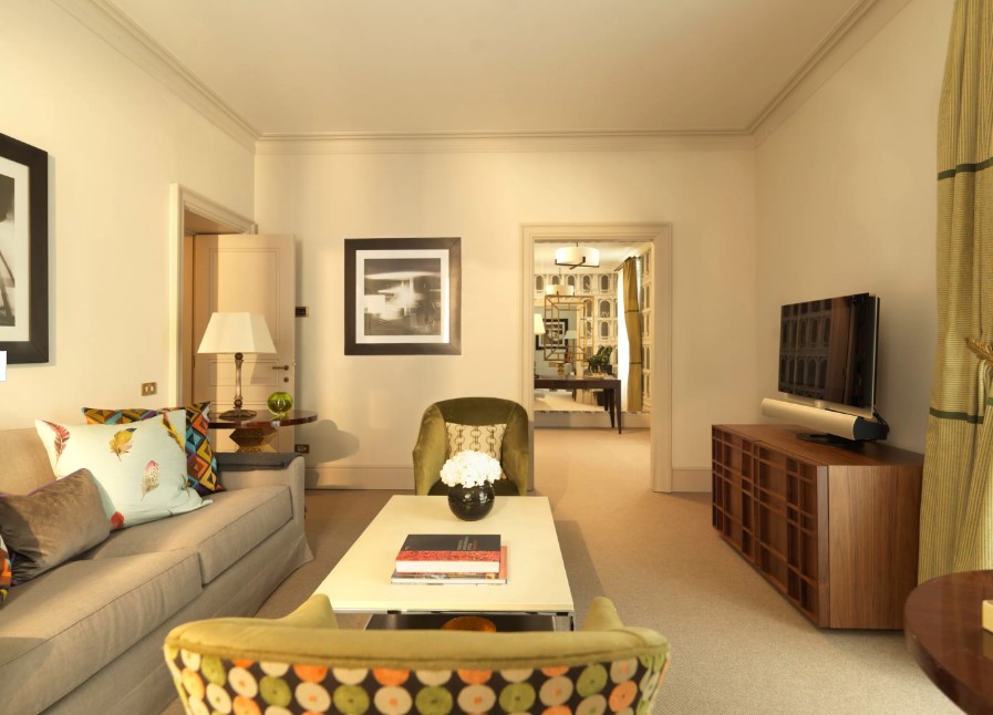 Просторі номери Делюкс поєднують елегантну спальню з шикарною зоною відпочинку та робочою зоною для створення стильного ефекту. Сучасні меблі гармоніюють із класичними елементами, від скульптурних елементів до мозаїк у римському стилі у ванній кімнаті, оздобленій італійським мармуром, а барвисті предмети мистецтва та ботанічні акценти додають індивідуальності.