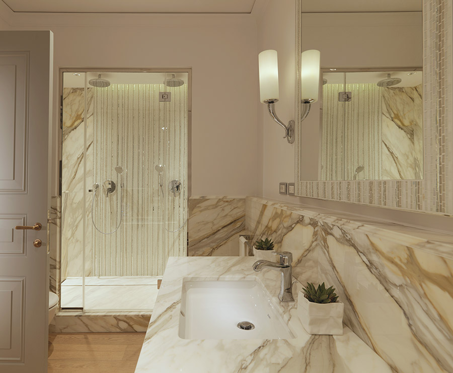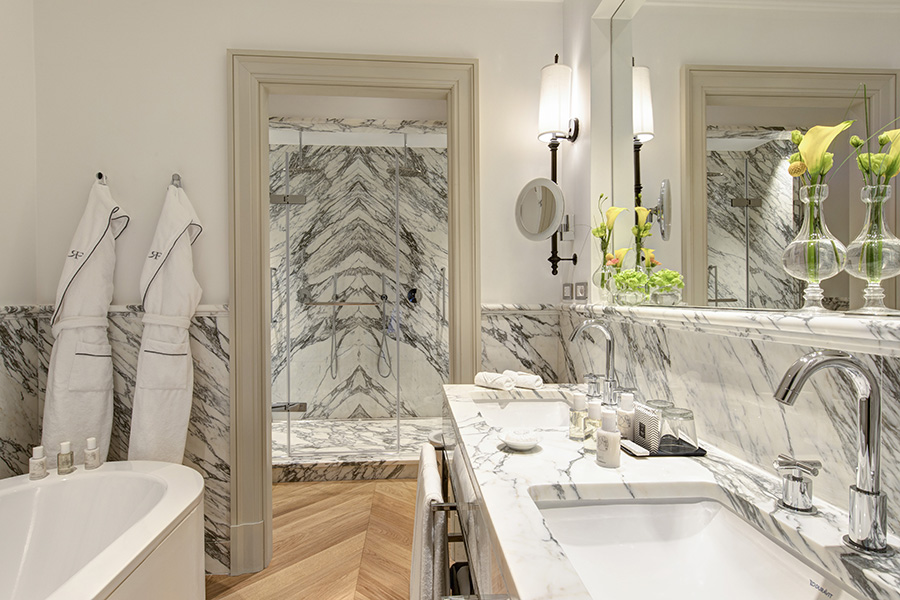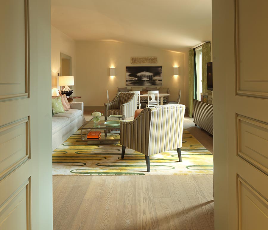 Наші напівлюкси елегантно вплітають класичні скульптури, барельєфи та сучасну фотографію в приголомшливий декор. Елегантна палітра кольорів у природних відтінках, від зелених ботанічних відтінків до спокійних кремових, і велика кількість природного світла з великих вікон надають простору відчуття спокою, а геометричні дзеркальні акценти та розкішні м’які меблі додають гламуру. Прекрасні ванні кімнати, оздоблені італійським мармуром і мозаїкою, такі ж стильні, як і просторі, і оснащені ексклюзивними засобами догляду за шкірою Irene Forte.