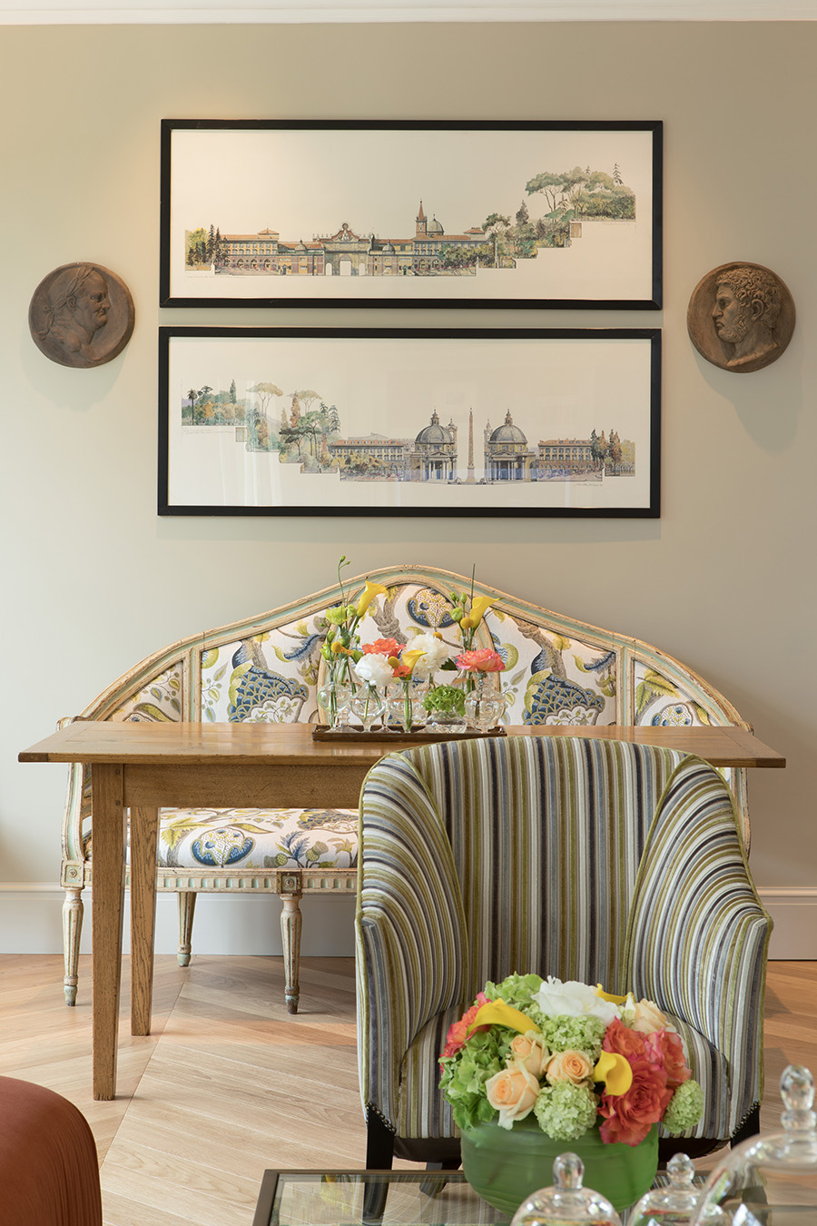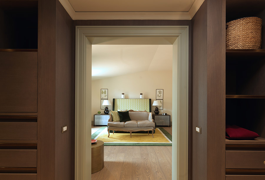 Просторий і світлий люкс Valadier має елегантні вікна від підлоги до стелі та французький балкон з видом на пагорб Пінчіан і Таємний сад готелю de Russie. Цей люкс, названий на честь архітектора Джузеппе Валадьє (також дизайнера саду готелю), чудово оформлений і оформлений у сучасному класичному стилі. Життєрадісна жовто-зелена палітра доповнює захоплюючі краєвиди, а стильні розсувні двері відокремлюють простору вітальню та обідню зону від спальні, де є гардеробна з туалетним столиком. У розкішній мармуровій ванній кімнаті є окрема ванна, подвійний душ і подвійна раковина, а також люкс має власну туалетну кімнату.
