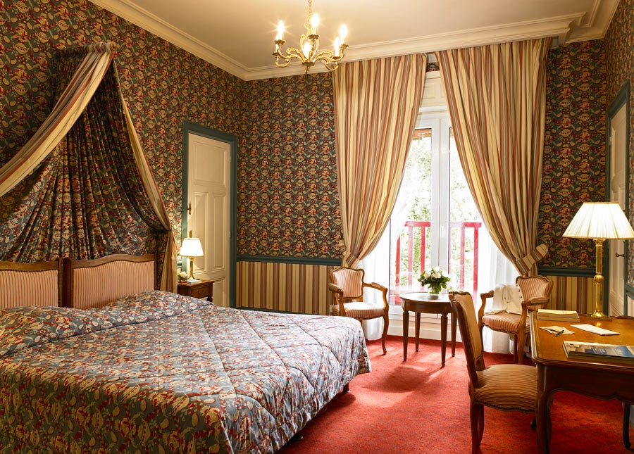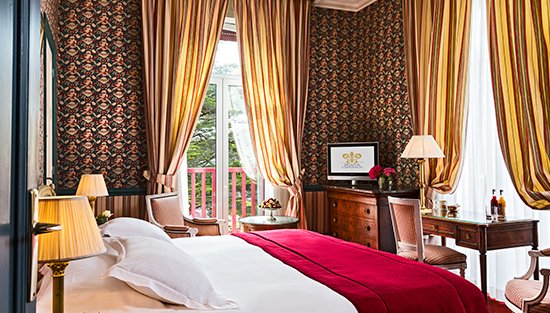 Насолоджуйтеся квітковими тканинами та стильними меблями. Побалуйте себе ліжком розміру "king-size" і балконом з видом на океан або ліс. 31 кімната та люкс готелю Castel Marie-Louise, оформлені Жаком Гарсіа, створюють романтизм у цьому прекрасному маєтку Ла Боль.