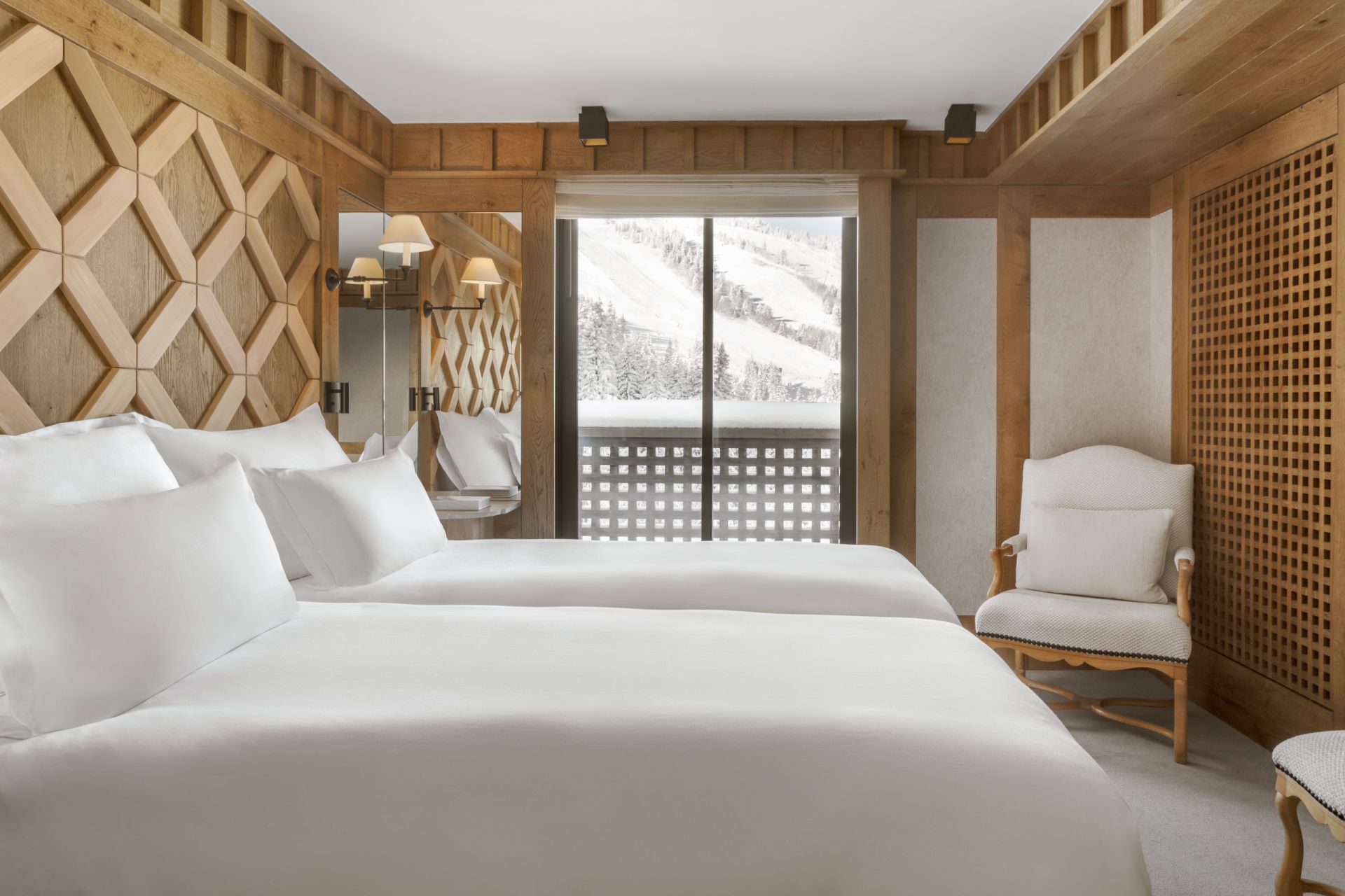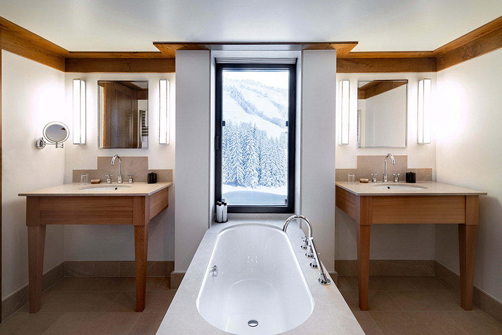 Люкс площею 61 кв.м з ліжком king-size та балконом з видом на гірськолижні спуски. У номері є простора ванна кімната з двома туалетними столиками, ванною, окремим душем і туалетом, і гардеробна.