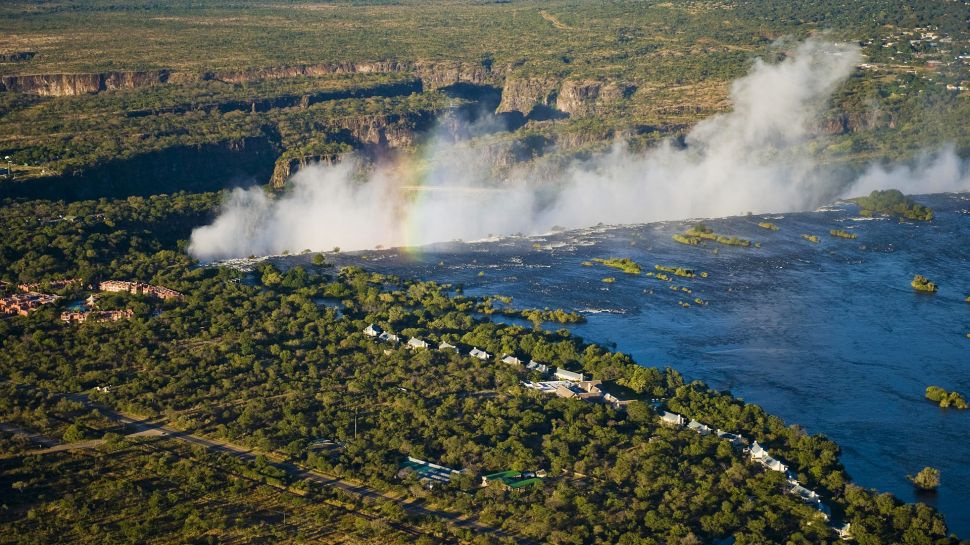 Готель розташований в самому центрі Мосі-Оа-Тунья, в 5 хвилинах від водоспаду Вікторія. У маколо, ім'я парку є " гарячий дим " , які місцеві жителі дали знаменитому водоспаду Вікторія, Мосі-оа-Тунга &апо; головна визначна пам'ятка. Готель займає територію вздовж берега річки Замбеці, оточеного садами і кущами. Готельний комплекс складається з 17 будівель з гострими дахами кані, великих веранд і балконів. колоніальний стиль архітектури та внутрішнього дизайну органічно поєднується з африканським коміром. Тут є внутрішній дворик з фонтаном. Гумідний загальний гостьовий готель прикрашений могилами і фотографіями африканських подорожей Девіда Livingston, дослідник, який приурочив Африка весь життя. Ресторан і бар в готелі, бібліотека, сувенірний магазин, салон краси, басейн, бізнес-центр, дитячий клуб Happy Hippo Club. Пропонуються послуги няні. Є програми для молодих жінок.