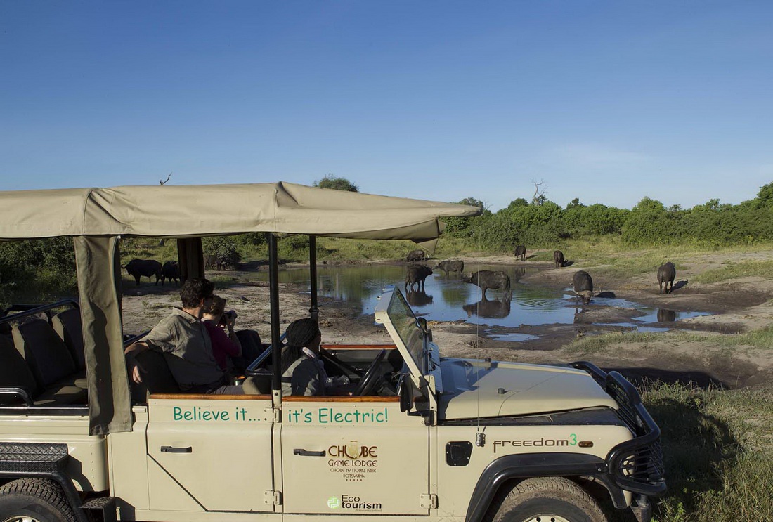Хостел знаходиться на березі річки Чобе, в північній частині Національного парку Чобе. Цей табірний табір засвідчує не тільки живопис перифікованих африканських пейзажів, але й нетрадиційного дизайну. Будівельні споруди побудовані в стилі Маврикій, з характерними високими дугами, тонкими колонками, струмками і черепахами на підлозі. Молодь поєднує романтику колоніальних часів, традиційні африканські традиції та сучасні технологічні розробки. У барі є круглі столи Вікторія, екзотична вечеря пропонується на околиці річкового берега навколо великого лука, а також фаскене бізнес-центр і конференц-зал обладнаний найсучаснішим європейським обладнанням. На додаток, два ресторани, сигарний клуб, великий відкритий басейн з терасою, тренажерний зал, сувенірний магазин і бібліотека з колекції унікальних книг на африканському природі. Чобей і апос; національний парк (1,1700 квадратних кілометрів) має найбільші слони в Африці, а також котли, носи, антипампи декількох видів і відомих африканських предків, в тому числі левів. Для активних льодів, сафарі організовані в відкритих джипах, річкових сафарі, рафтах, ранкових і вечірні круїзи на човнах або невеликому бульбашковому човні, поїздках Мосі-оа-Тунья (також місцеві племена називають водоспадом Вікторія), шкірами і лимонами.