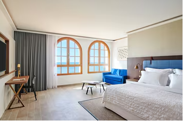Почувайтеся як вдома в номері Prestige Suite, з величезних вікон якого відкривається вид на пляж Сан-Сальвадор. Відпочиньте у зручній вітальні, яка відокремлена від спальні розсувними дверима.