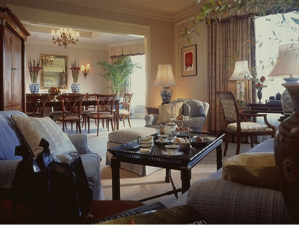 Президентський Люкс: 193 кв.м1 часй Номер пластини знаходиться на 11 поверсі, оформленому в зелених і кольорових слонових кістках тону, включає в себе лость, розсіяний мармур, просту вітальню з робочою зоною, 10-особистісна їдальня, дві спальні з суміжними ванними кімнатами, harbor, гостьова ванна кімната з кухнею дива, з підлоги до саду. Максимальне розміщення 6 дорослих або 4 дорослих +2 дітей.