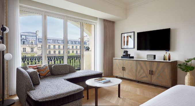 Готель Paris Marriott Champs Elysees розташований у самому серці 8-го округу, у бажаному золотому трикутнику столиці. У готелі поєднується сучасна розкіш із неокласичною архітектурою. Займаючи культову адресу на Єлисейських полях, готель втілює модну спадщину міста через шикарний стиль, який відображає зв’язок будівлі з Maison Vuitton і модельєром Дженні Сасердоте. Виразний скляний купол наповнює внутрішній двір природним світлом, характеризуючи готель як витончену пам’ятку, де гості можуть збиратися, щоб випити та повечеряти в барі та ресторані Atrium. 192 номери та люкси створюють оазис спокою в центрі Парижа. для оптимального відпочинку. Кожен простір, збагачений паризьким колоритом і розумною французькою естетикою, максимально використовує оригінальні елементи, такі як високі стелі, великі вікна та декоративні балкони. У вибраних люксах надзвичайні краєвиди на легендарні визначні пам'ятки створюють особливе відчуття місця.