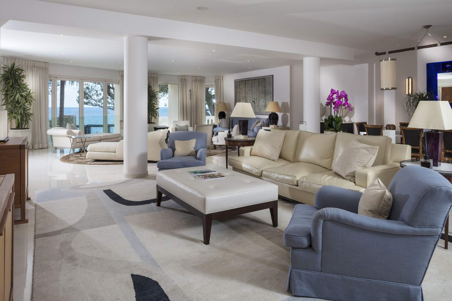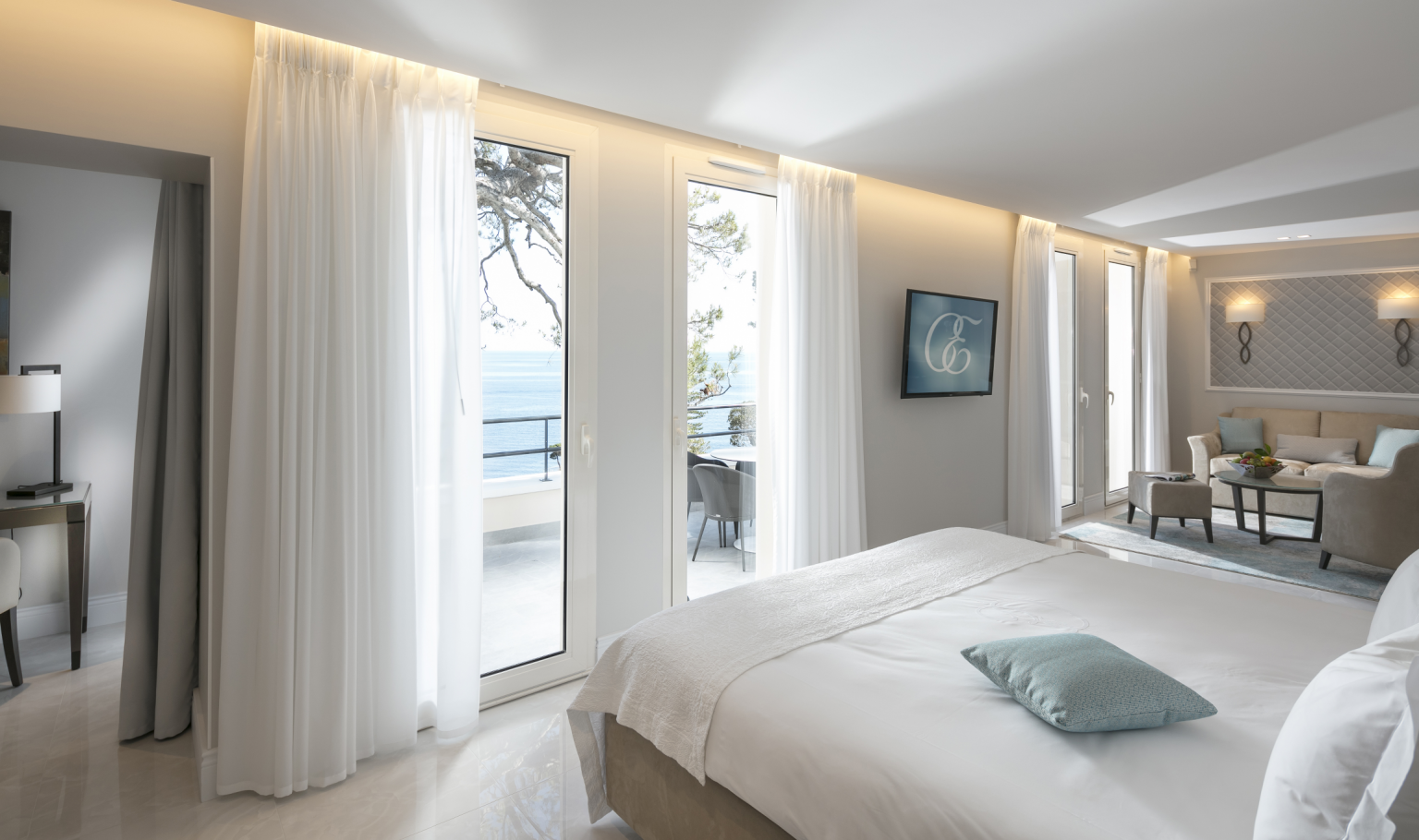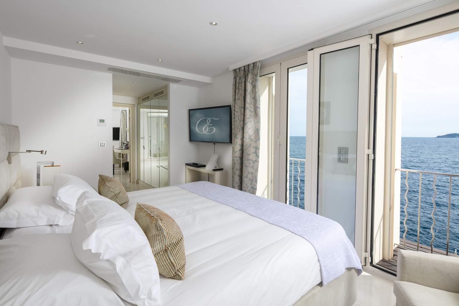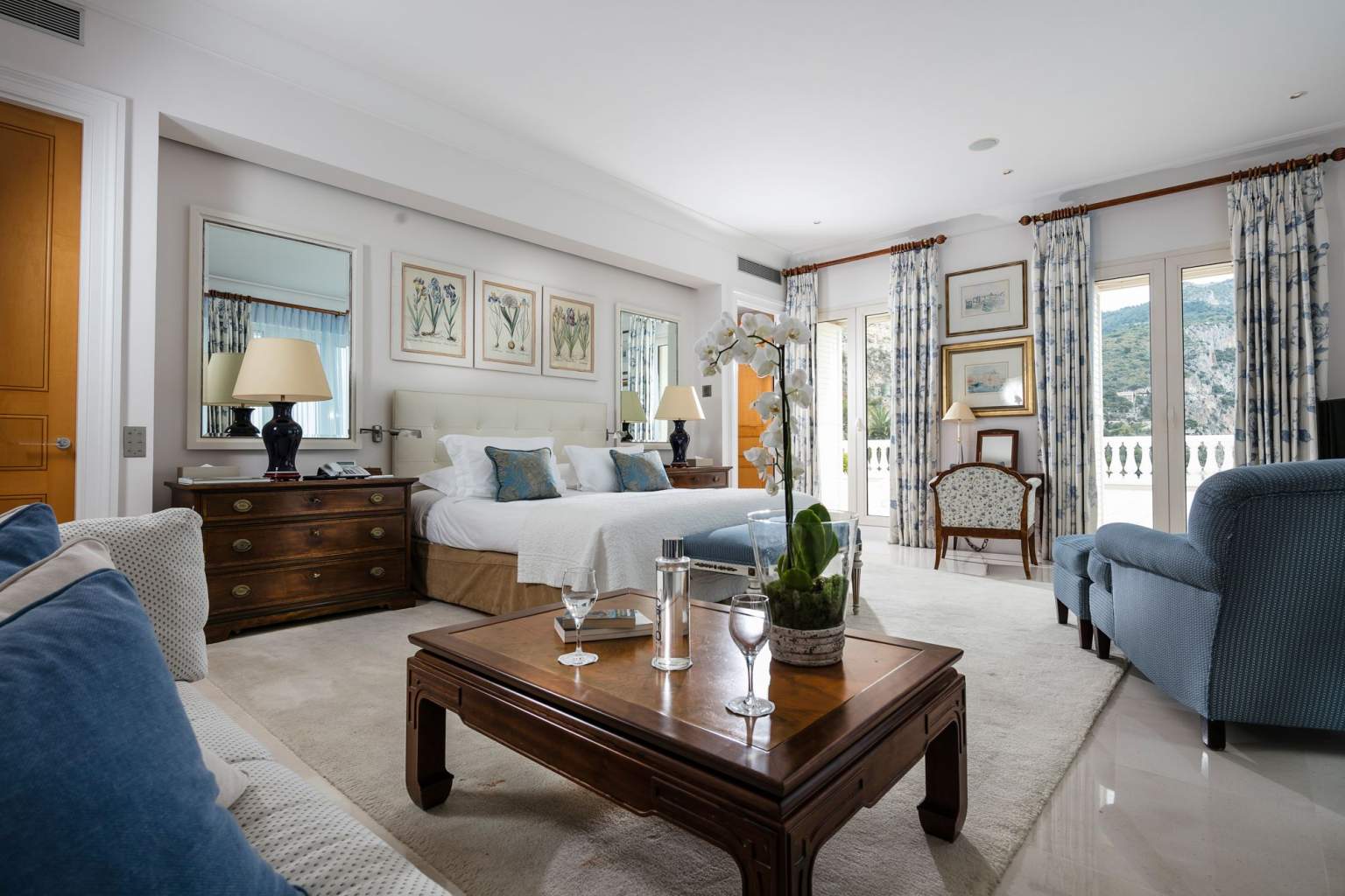 445 кв. м + тераса 45 кв. м. Розкішний люкс розташований на 1 поверсі головного корпусу, він складається з 4 спальних кімнат (90, 30, 30 і 25 кв. м), передпокою, просторої вбиральні, вітальні та їдальні площею 150 кв. м, міні-кухні, кабінету (25 кв. м), 4 ванних кімнат обладнаних ванною та душем, гостьового туалету та тераси. З вікон номера та тераси відкривається чудовий краєвид на Середземне море та берегову лінію. Розміщення: 8 осіб.