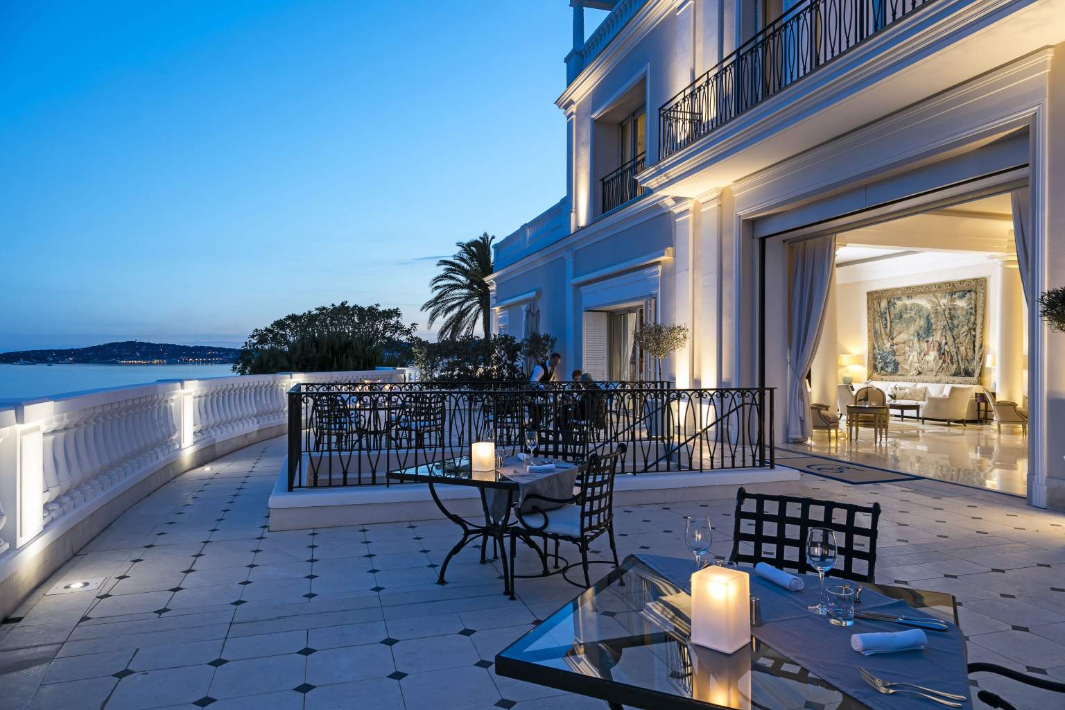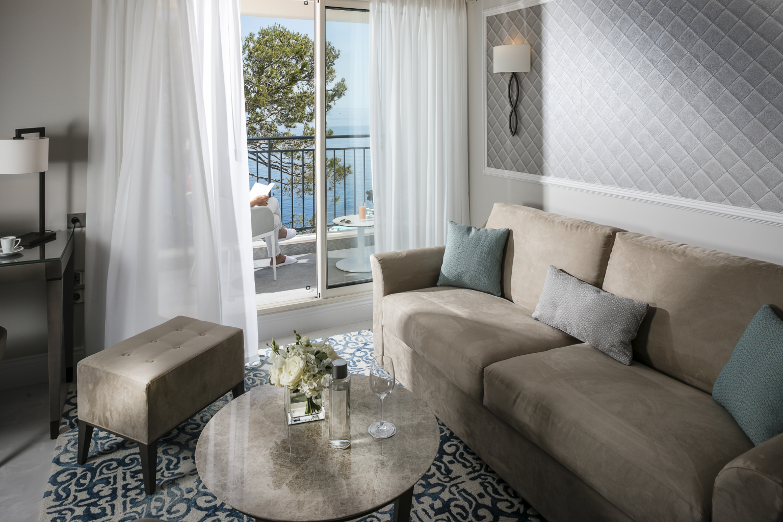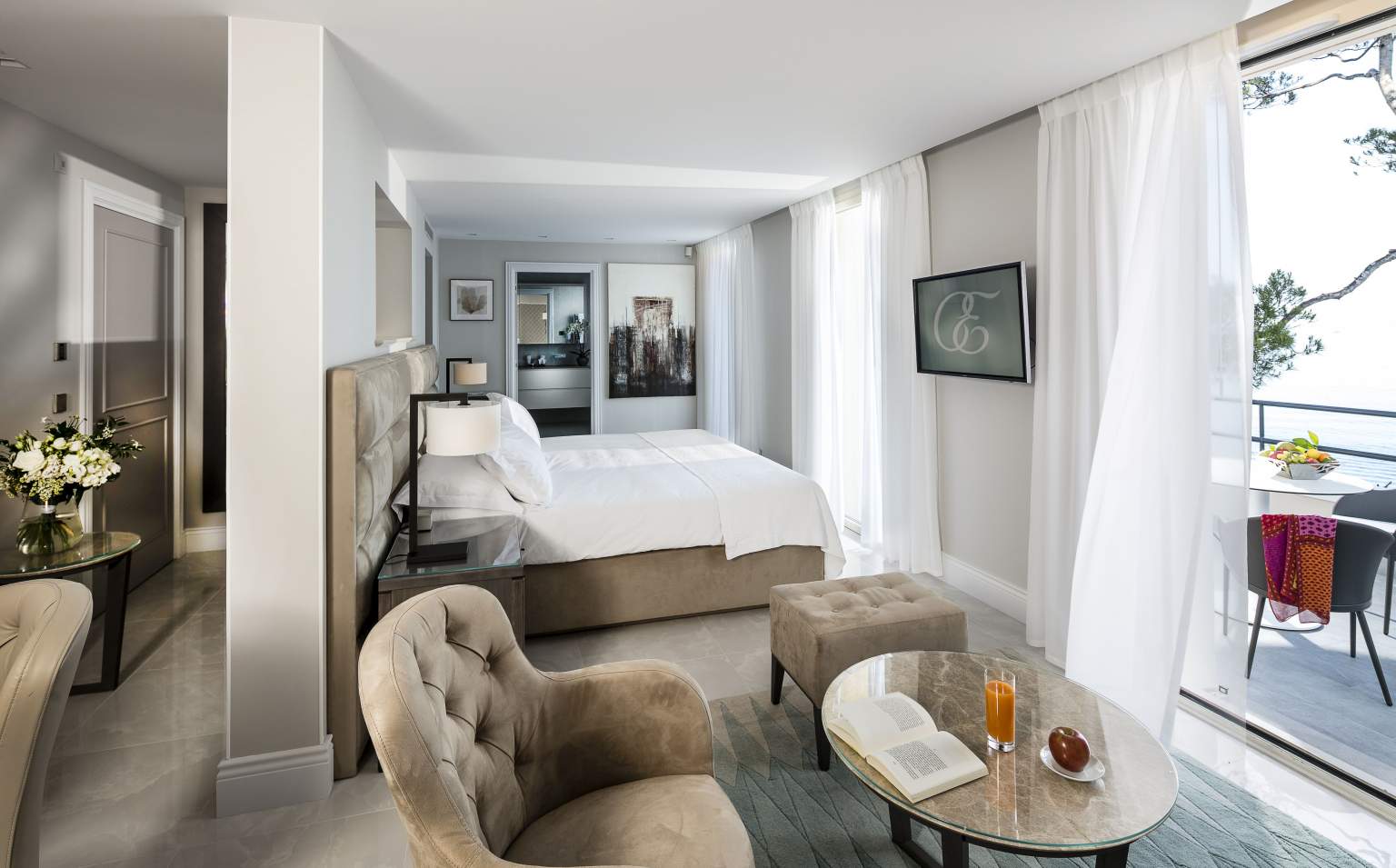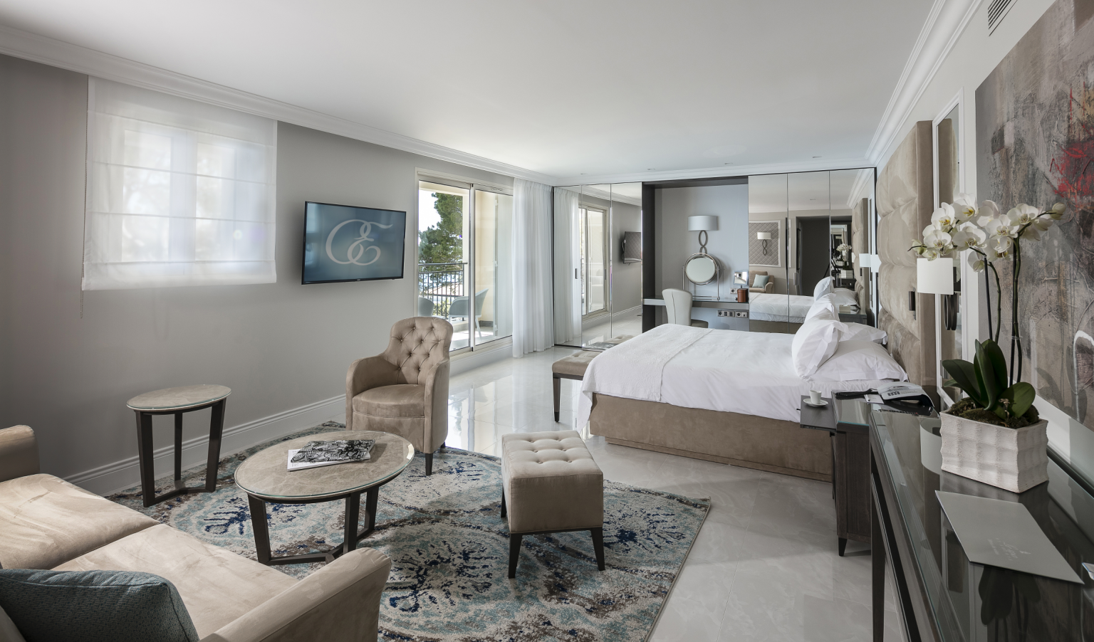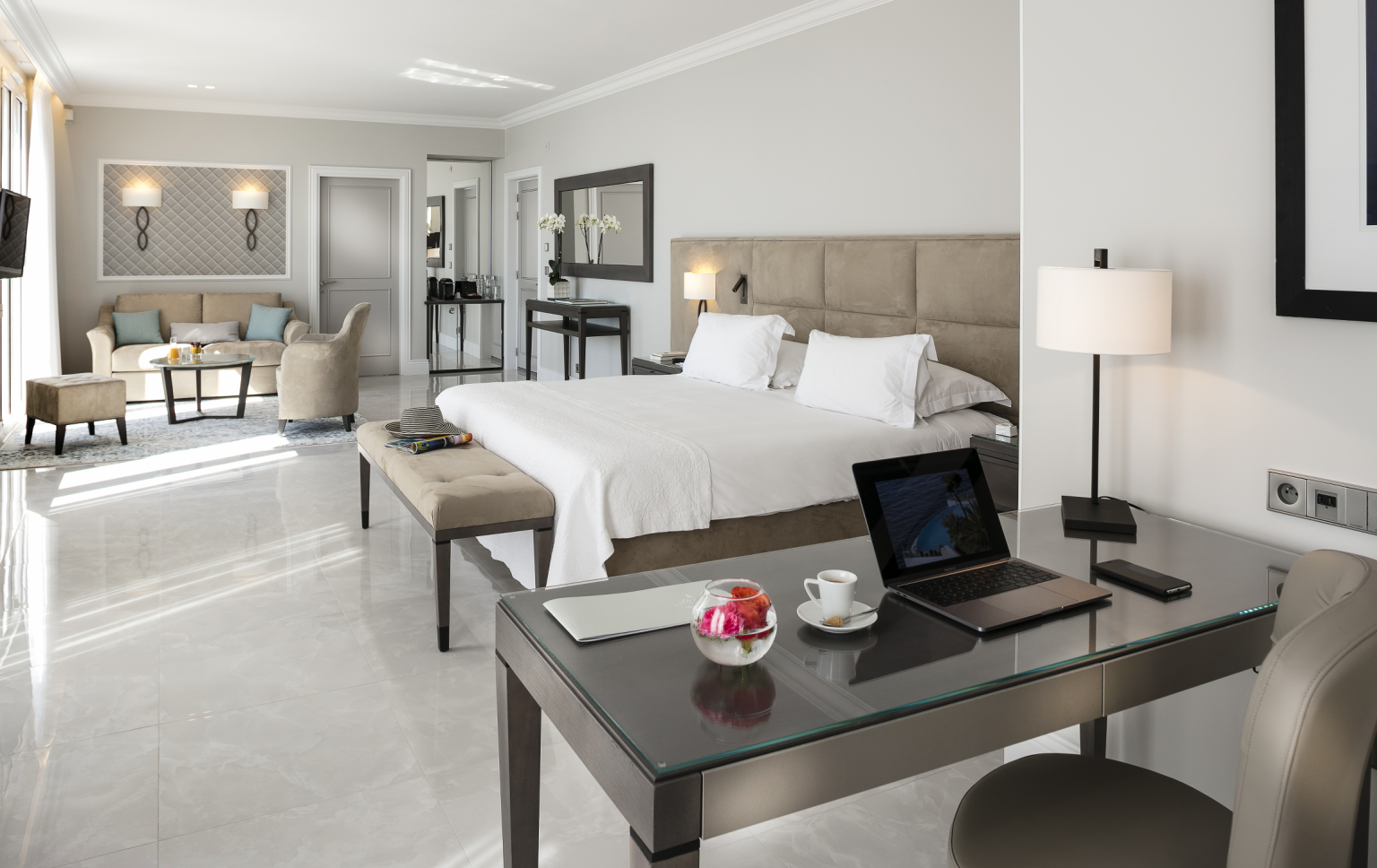 445 кв. м + тераса 45 кв. м. Розкішний люкс розташований на 1 поверсі головного корпусу, він складається з 4 спальних кімнат (90, 30, 30 і 25 кв. м), передпокою, просторої вбиральні, вітальні та їдальні площею 150 кв. м, міні-кухні, кабінету (25 кв. м), 4 ванних кімнат обладнаних ванною та душем, гостьового туалету та тераси. З вікон номера та тераси відкривається чудовий краєвид на Середземне море та берегову лінію. Розміщення: 8 осіб.
