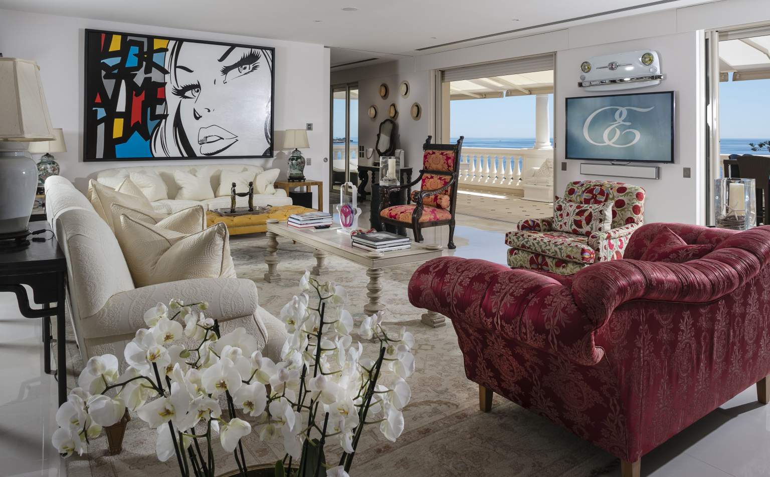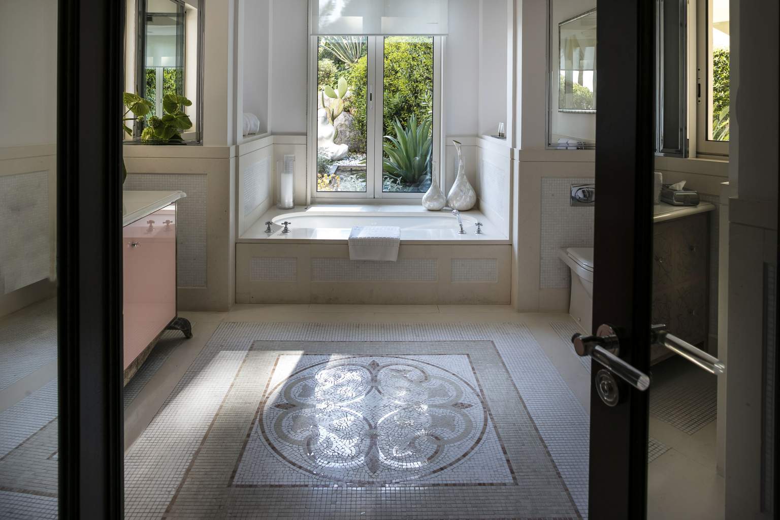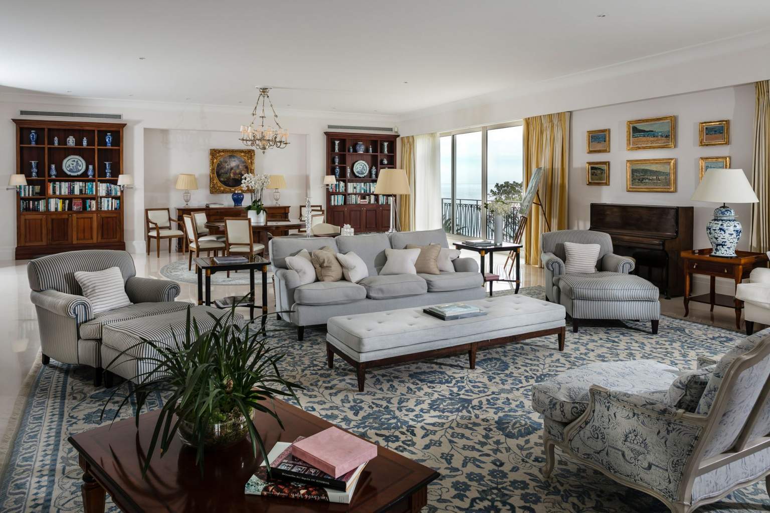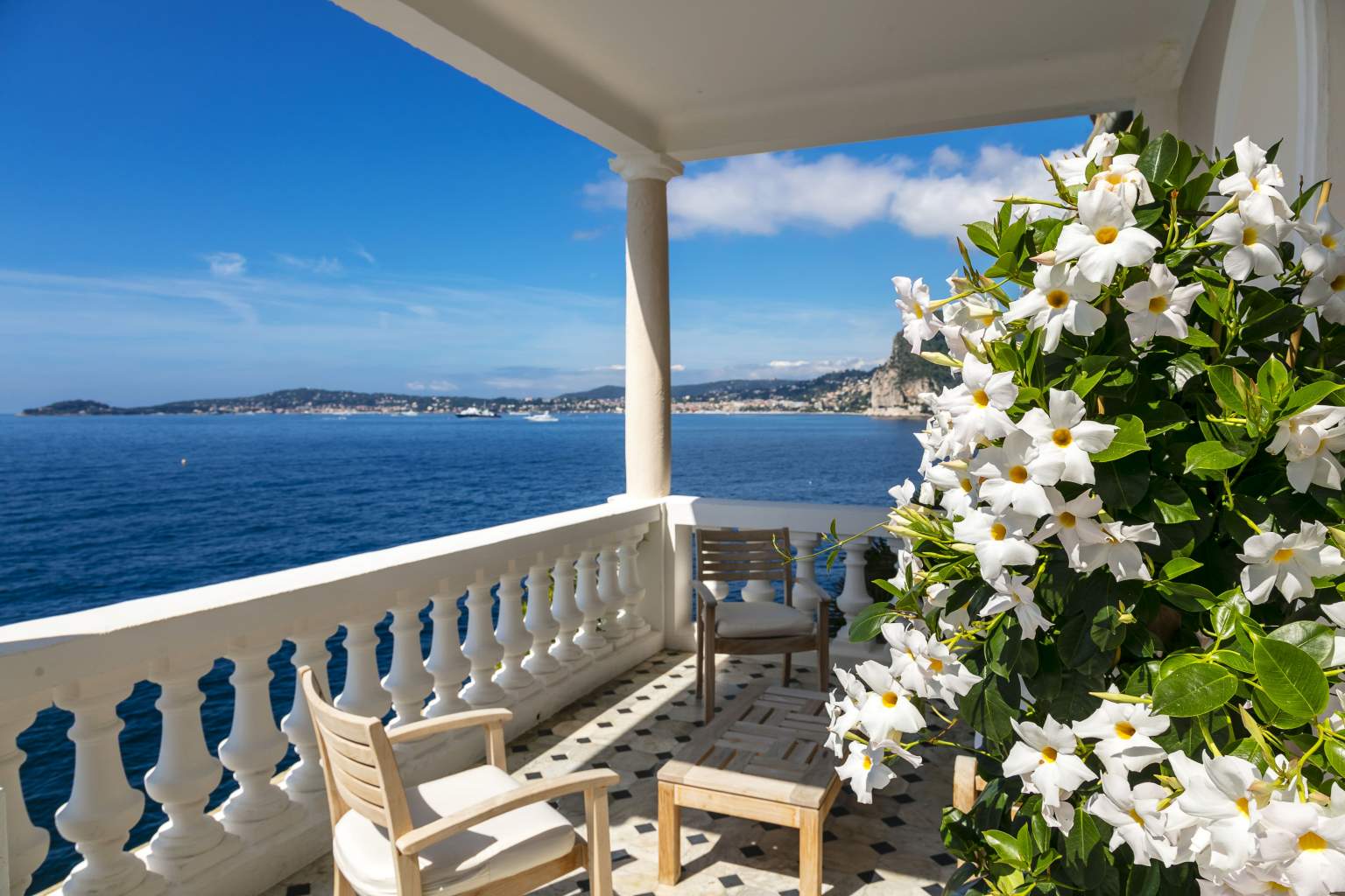 445 кв. м + тераса 45 кв. м. Розкішний люкс розташований на 1 поверсі головного корпусу, він складається з 4 спальних кімнат (90, 30, 30 і 25 кв. м), передпокою, просторої вбиральні, вітальні та їдальні площею 150 кв. м, міні-кухні, кабінету (25 кв. м), 4 ванних кімнат обладнаних ванною та душем, гостьового туалету та тераси. З вікон номера та тераси відкривається чудовий краєвид на Середземне море та берегову лінію. Розміщення: 8 осіб.