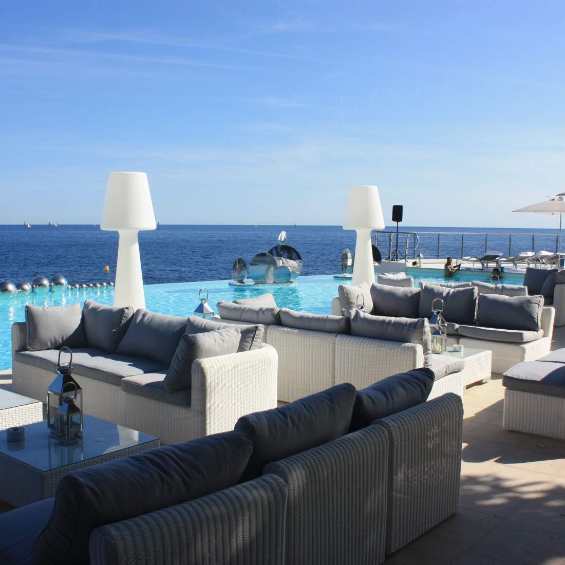 55 кв. м + тераса 15 кв. м. Два чудові люкси розташовані на 2 поверсі корпусу La Corniche і складаються зі спальні (20 кв. м.) з великим двоспальним ліжком, гардеробної та зони відпочинку, вітальні (18 кв. м.), ванної кімнати з ванною та душем, окремого туалету та мебльованої тераси. Розміщення: 3 особи.