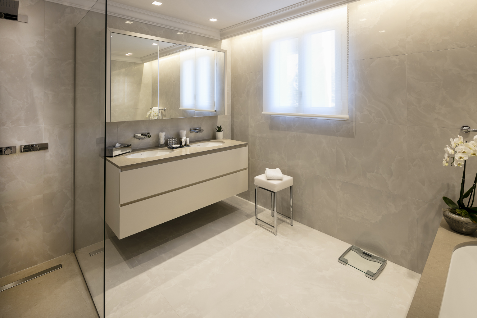 55 кв. м + тераси 35 кв. м. Два світлі просторі люкси розташовані на 1 поверсі корпусу La Corniche. Номери складаються з 2 спальних кімнат по 20 кв.м з великими двоспальними ліжками та зонами відпочинку, вітальні, 2 ванних кімнат з ваннами та 2 мебльованих терас. Розміщення: 4 особи.