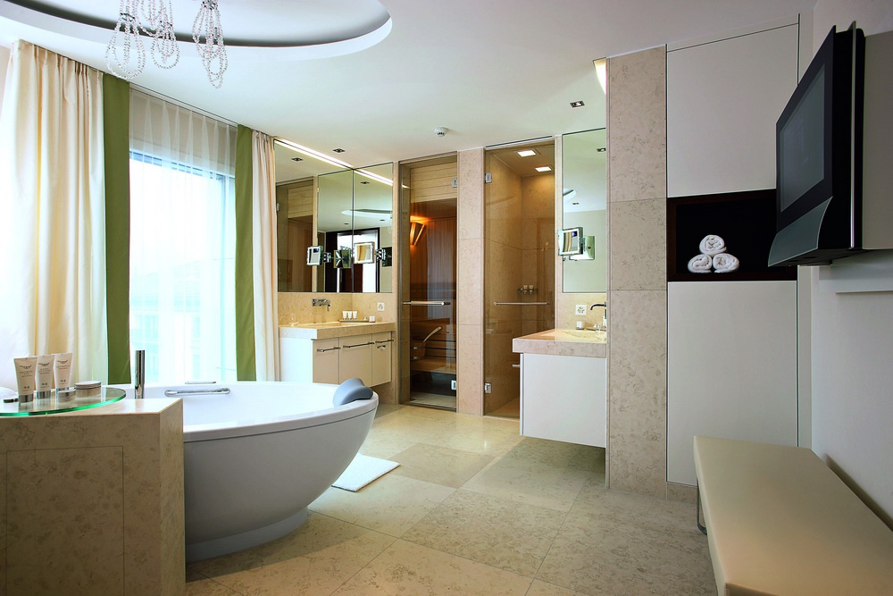 harbor, simplic ванна кімната, відокремлений від спальні скляних дверей і прикрашений Swarovski запальницями, з harbor, jakuzi, сауна, вапурна кабіна, термічна вода і вікна; поділ приміщення з гумкою, гостьова кімната, всі номери з спальним місцем, всі номери мають вихід на шафу. Чи можна підключитися до номеру Spa Suite Superior (з номером, зайнятим на 9 поверсі). Гості можуть скористатися послугами палацу.