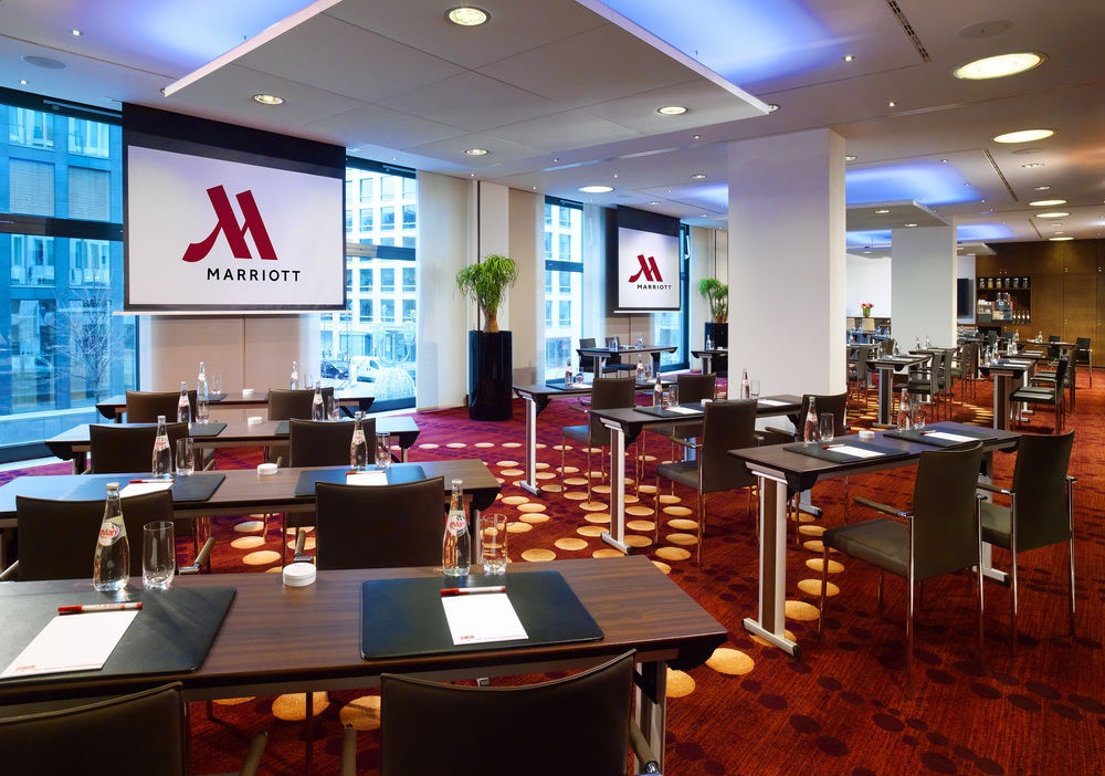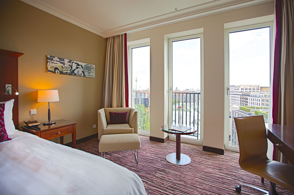 Сучасний будинок Берліна Marriott розташувався в районі Потсдамера Плаца в центрі Берліна. Однією з найпрестижніших напрямків німецького столиці відкрилася велика культурно-розважальна програма перед гостями: Branderburg Gate і Reichstaga Building, а також зоопарк, кольорові вулиці з сотні дорогих магазинів і найбільшим казино в Німеччині. Чудова чарівність сучасного стилю в лобі готелю. Великий колір, дизайнерські меблі, екзотичні рослини і елегантні потокові колони - гармонійне поєднання внутрішнього простору добре вирівняється з нестандартним європейським стилем 10-ступеневий будинок. Цей сміливо наповнений світлом, і створення красивого дизайну, робить логічне розширення в обробці кімнатних внутрішніх приміщень. Перед гостями меблі з червоного дерева, пофарбовані тканини і безліч деталей декору створюють теплу атмосферу і гарантують відмінний відпочинок.