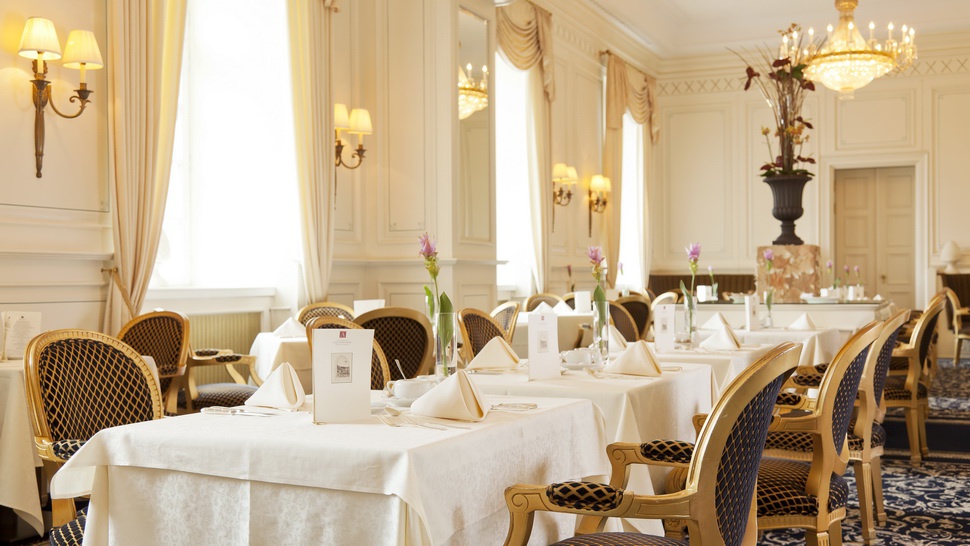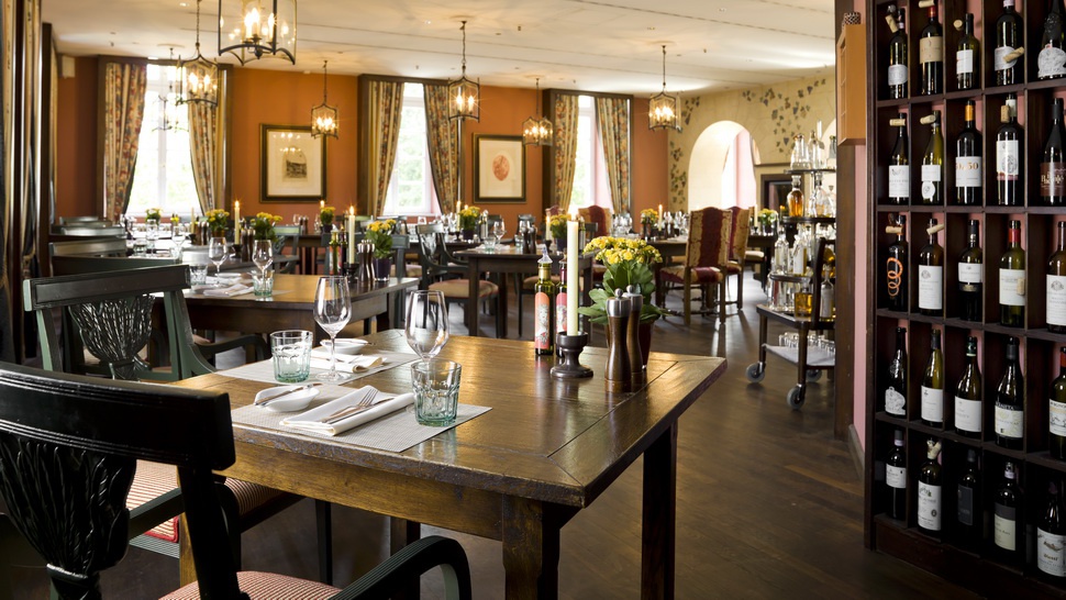 Ресторани і бари: Ресторан "Гурмет" - Ресторан Гастроном (три зірки Міхлен Гід). Чеф, Джоахім Вішлер. Вино понад 900 винних класів. У палаці особняк. З 12:00 до 14:00 та вечерею з 7:00 до 22:00 (крім понеділка та вівторок).