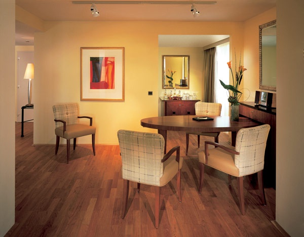 Регенція Виконавчий Люкс (110 кв. м) складається з вітальні з обідньою зоною, спальнею, ванною кімнатою, кухнею, а до Рейну та Кельнської будівлі.