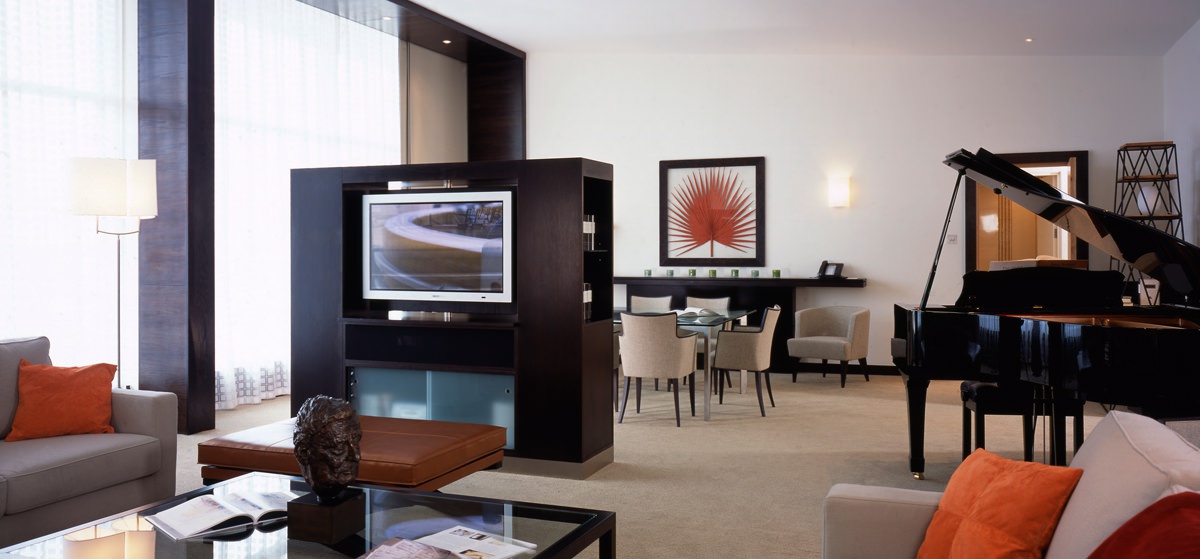 У номерах обладнані останнє слово обладнання, сучасні сталеві інтермери з теплими тонами з великими, підлоговими вікнами, які відкриваються панорамний вид на річку і місто, деревна смуга, комфортні дизайнерські меблі, килимове покриття на підлозі, оригінальні прикраси. У готелі є SPA-центр, що складається з сауни, тренажерного залу, 6 процедурних офісів, які пропонують великий спектр послуг з догляду за тілом з використанням відомих ліній ESPA, Ishi, Carita.