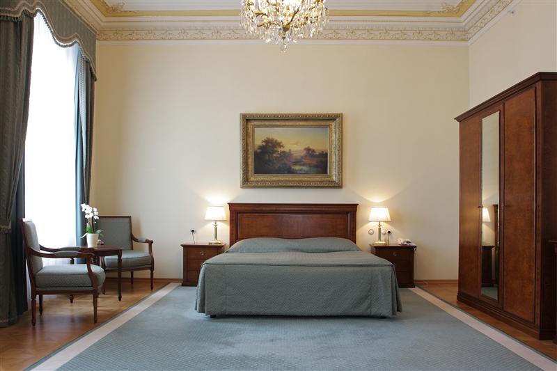 Апартаменти Президента: 130 кв.м. На 3-му поверсі. З вітальні, їдальня, спальня з двоспальним ліжком king-size, ванна кімната, два туалетні номери. Ось факс, кавоварка, CD/DVD плеєр, кондиціонер. Вид на Карлу війну. Додатково: супутникове телебачення.