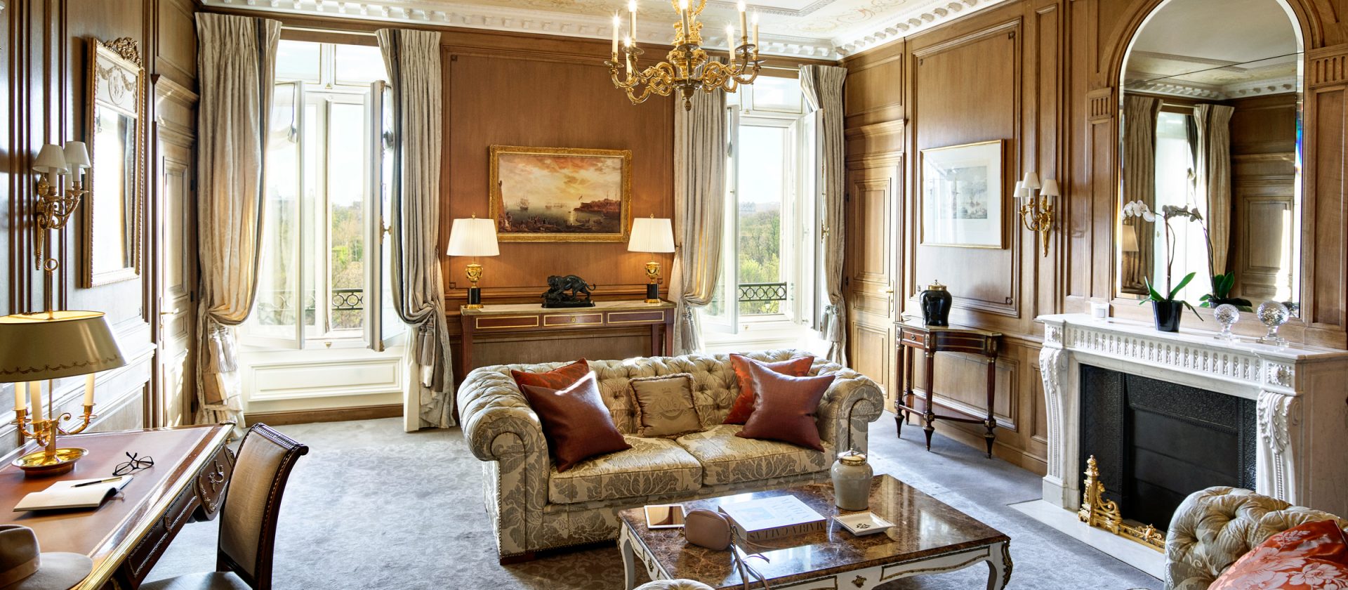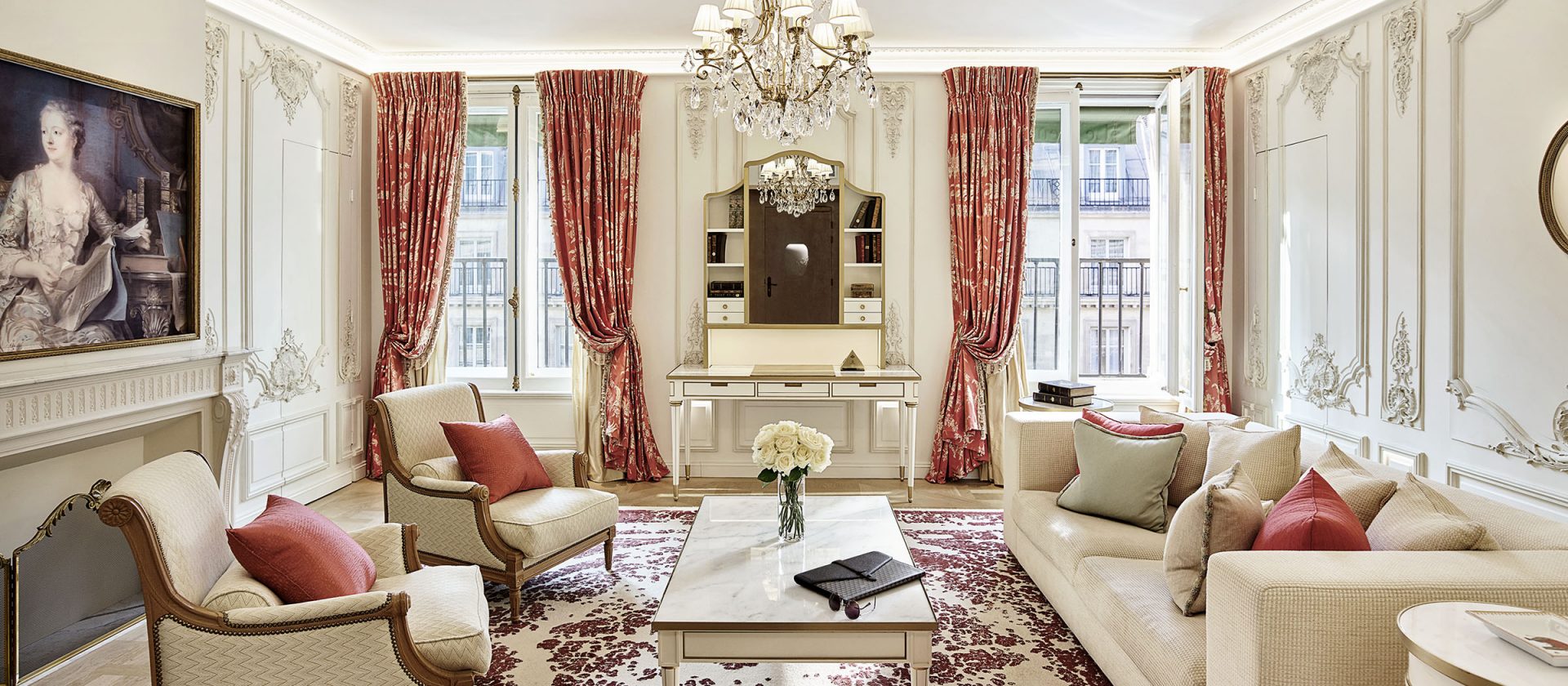 160 кв. м. Апартаменти у версальському стилі з високими стелями та дерев'яною підлогою складаються з трьох спалень з ліжками розміру king-size або twin, просторої вітальні з класичними витонченими меблями, обідньою зоною на 12 персон та декоративним каміном, мармурової ванної кімнати з глибокою ванною кабіною (деякі номери мають хаммам), передпокою, туалетної кімнати. Вигляд на Париж та його знакові пам'ятники – Ейфелеву вежу та Лувр. Доступно бронювання додаткового спального місця, дитячого ліжечка та суміжного люксу з видом на сад Тюїльрі. Розташований на першому поверсі. Розміщення: 3 особи.