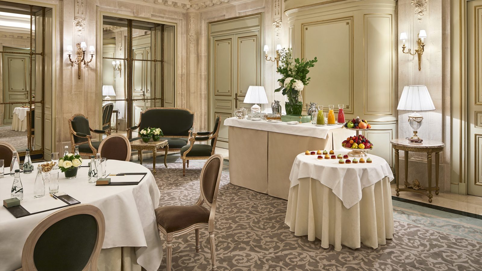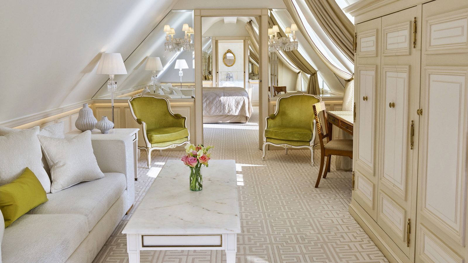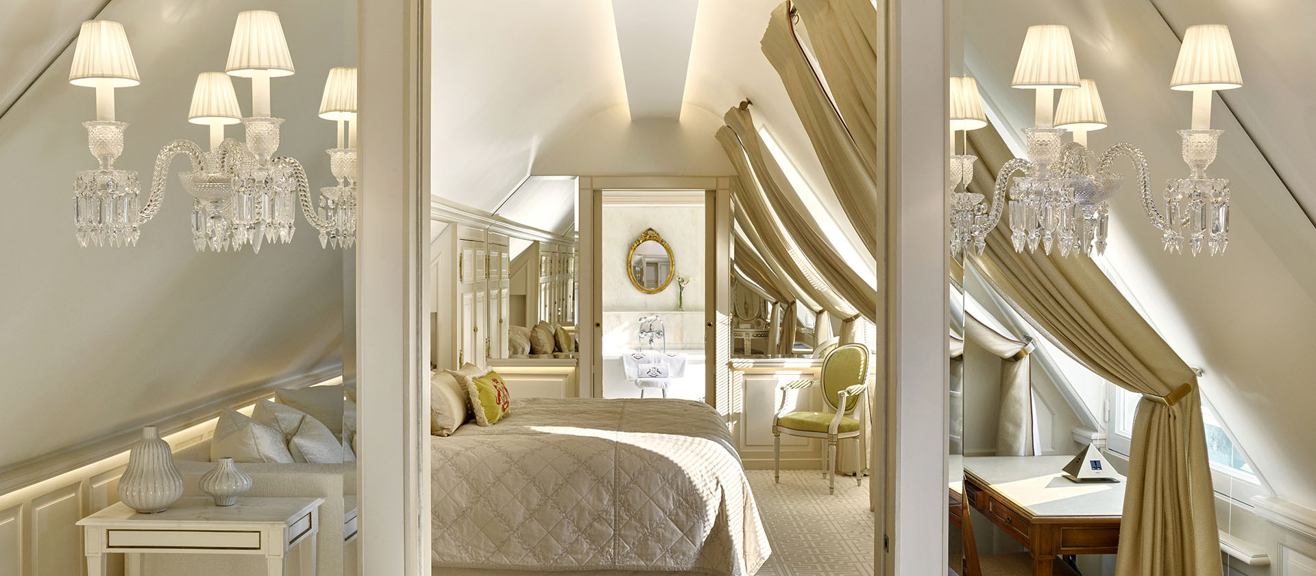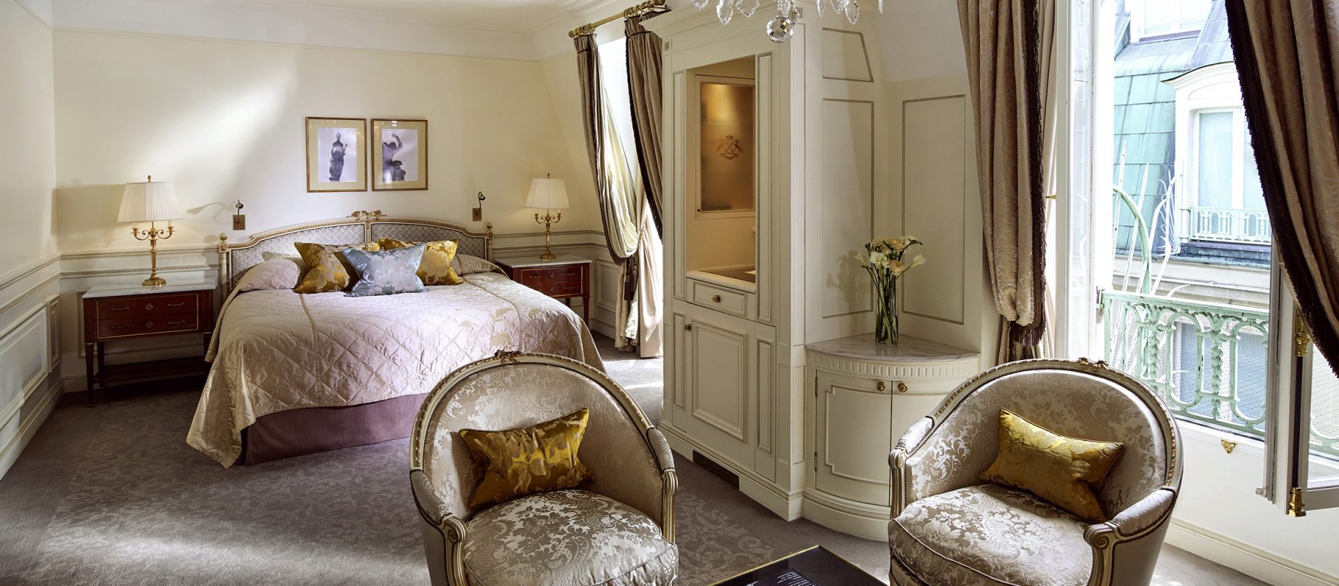 Номер у стилі епохи Людовика XVI складається зі спальні з ліжком розміру king-size або двох ліжок розміру twin, вітальні, гардеробної та мармурової ванної кімнати з природним освітленням, глибокою ванною та окремою душовою кабіною. Доступне бронювання додаткового спального місця, дитячого ліжечка. Вид на готельний внутрішній двір. Розміщення: 3 особи.