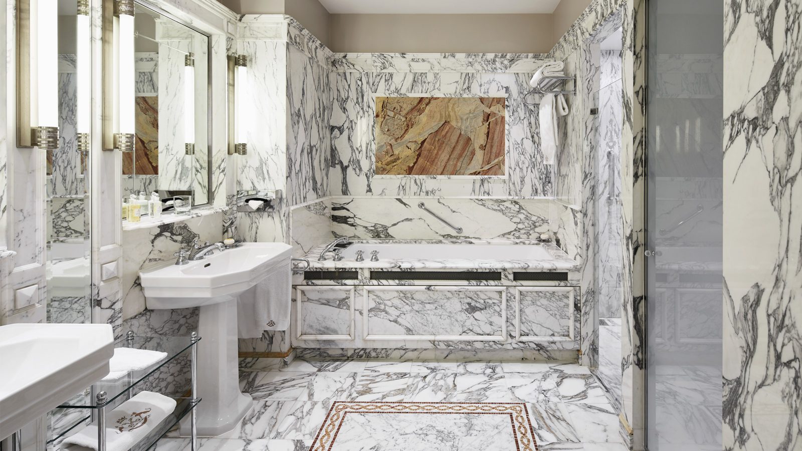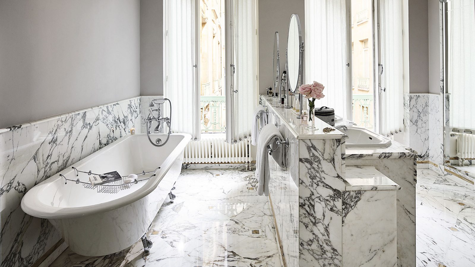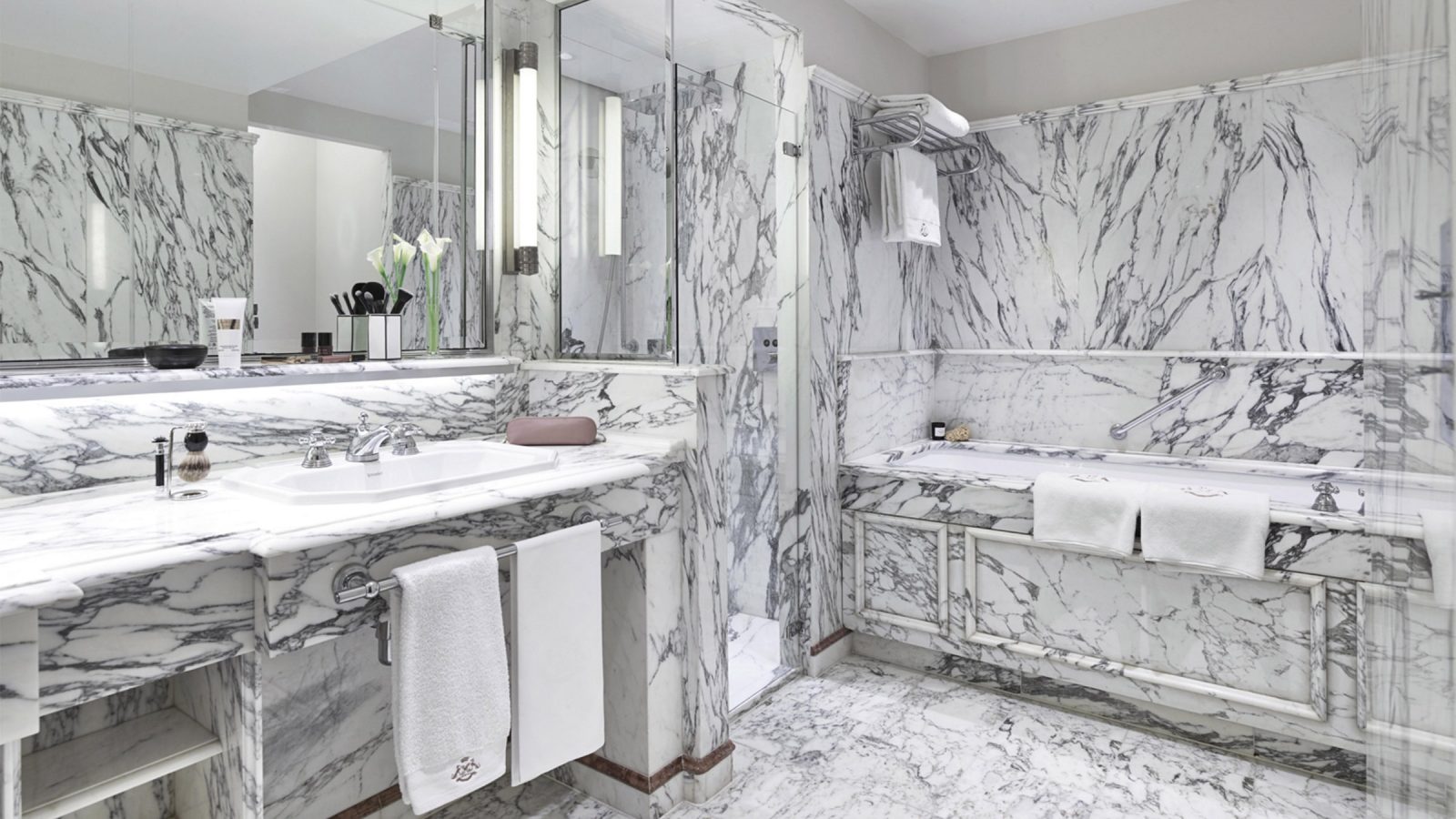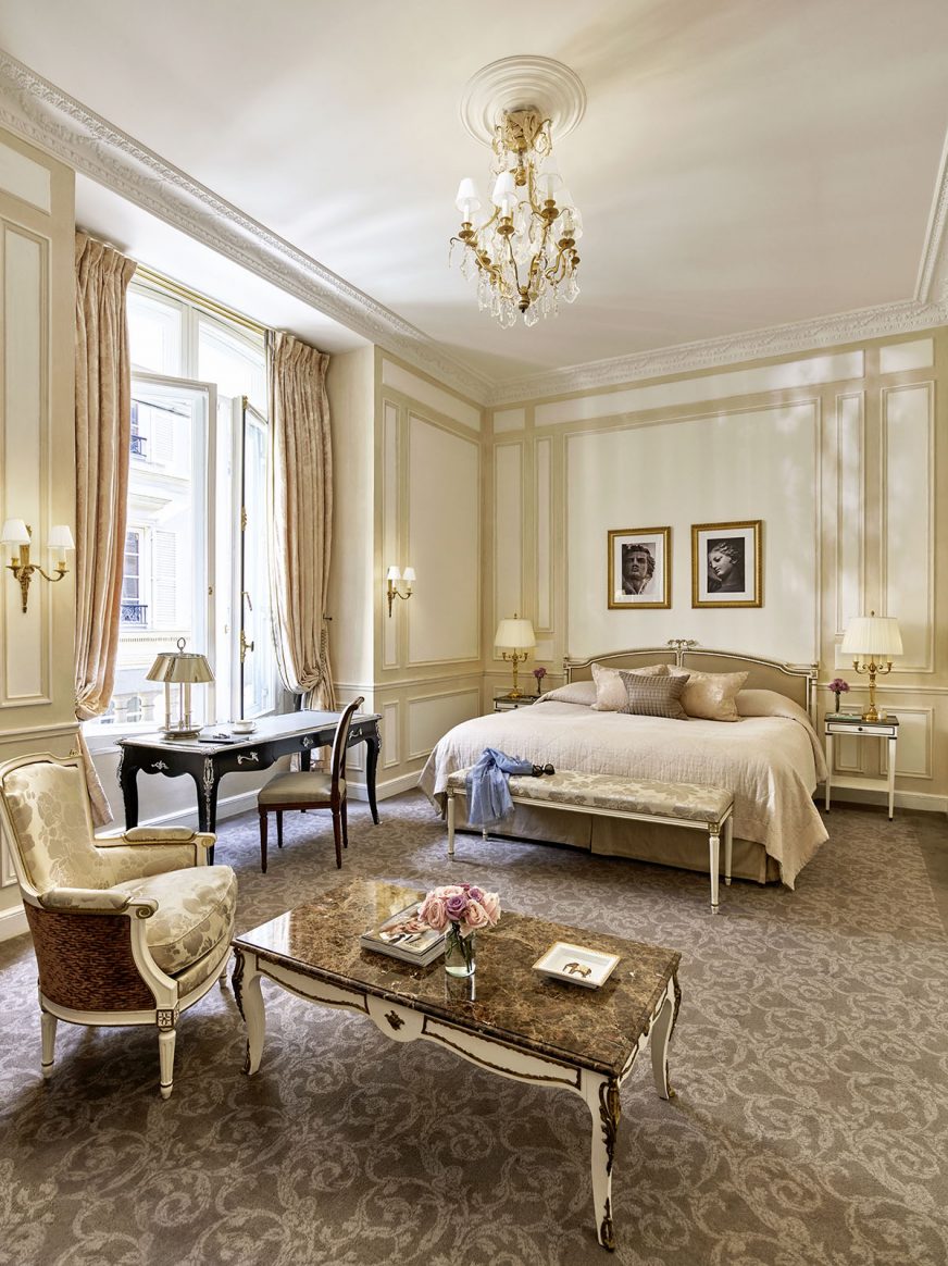 75 кв. м. Витончений суперлюкс складається зі спальні з ліжком розміру king-size або двох ліжок розміру twin, вітальні з розкішними меблями та 2 мармурових ванних кімнат з глибокою ванною та окремою душовою кабіною, передпокою. Доступне бронювання додаткового спального місця, дитячого ліжечка. Вид на готельний внутрішній двір або Рю де Кастільйон. Розміщення: 3 особи.