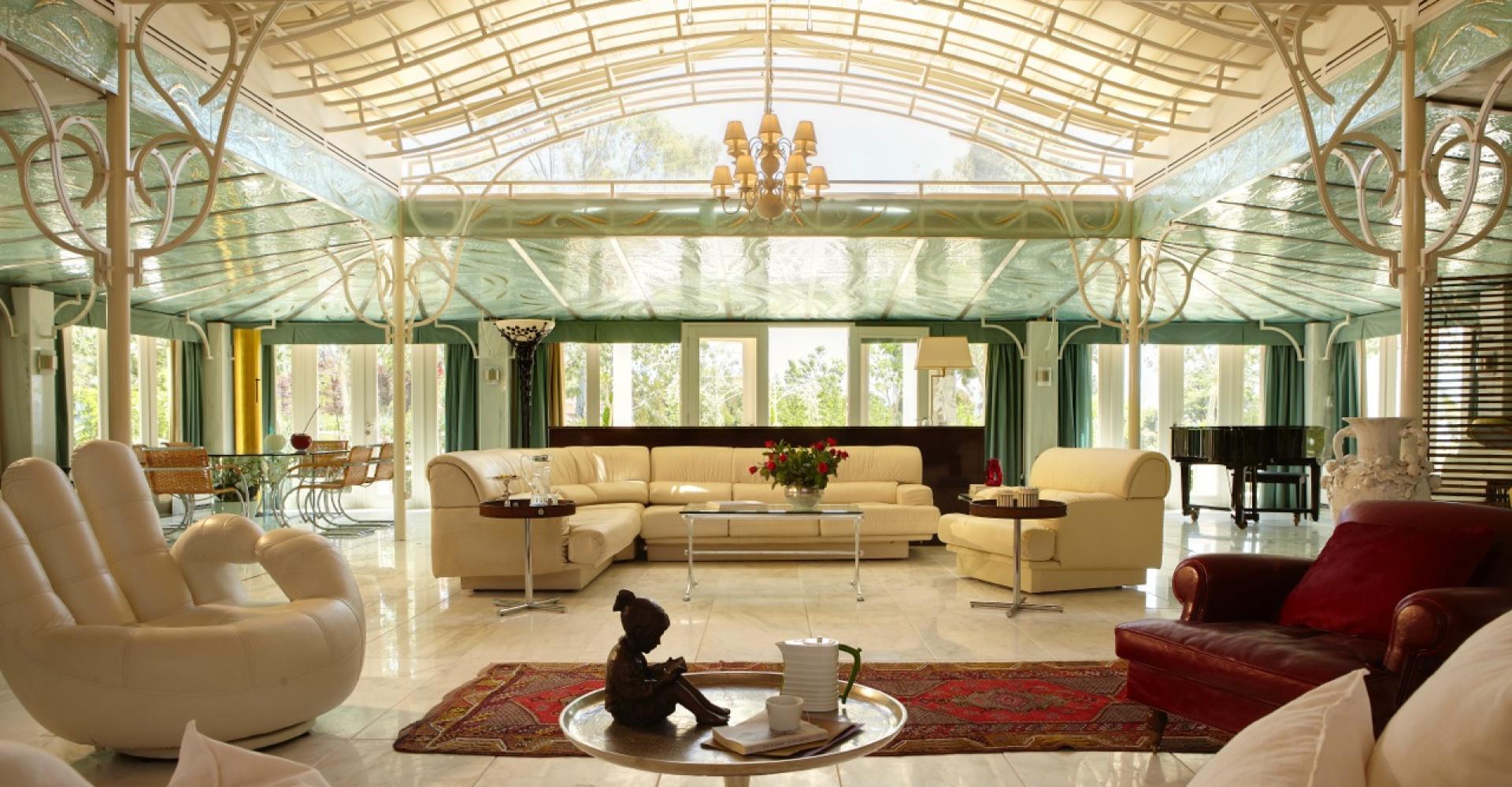 750 кв. м. Шикарна вілла включає три спальні, три мармурові ванні кімнати з гідромасажними ваннами та окремим душем, вітальню з мармуровим каміном, антикварними венеціанськими дзеркалами, оригінальними витворами мистецтва, справжнім кораловим столом та стільцями роботи Саарінена. Вілла повністю обладнана та має міні-кухню. Приватна тераса збудована на двох рівнях. На нижньому рівні знаходиться одна з трьох спалень і ванна кімната, а також великий нескінченний басейн з підігрівом, навіси та тенти від сонця, велике індійське ліжко під балдахіном, 2 зони з видом на море. Розміщення: 6 осіб.
