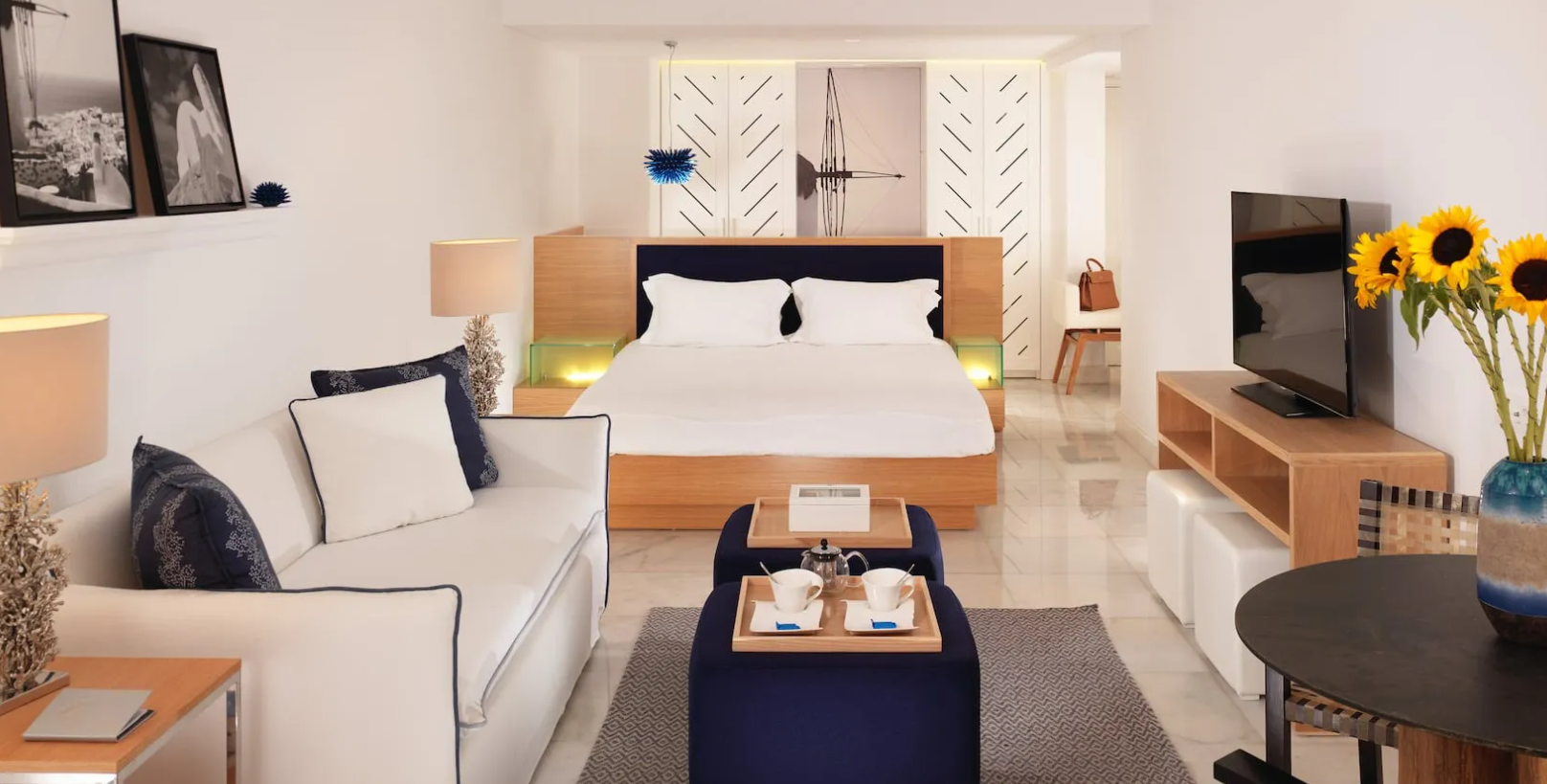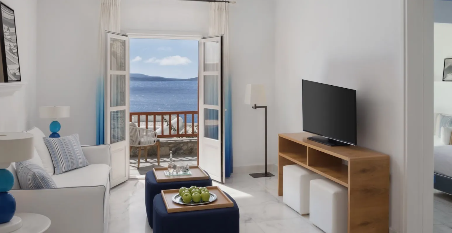 Mykonos Grand Hotel & Resort – це гармонійне поєднання сучасного комфорту, витонченого смаку та самобутніх традицій стародавнього острова Міконос.