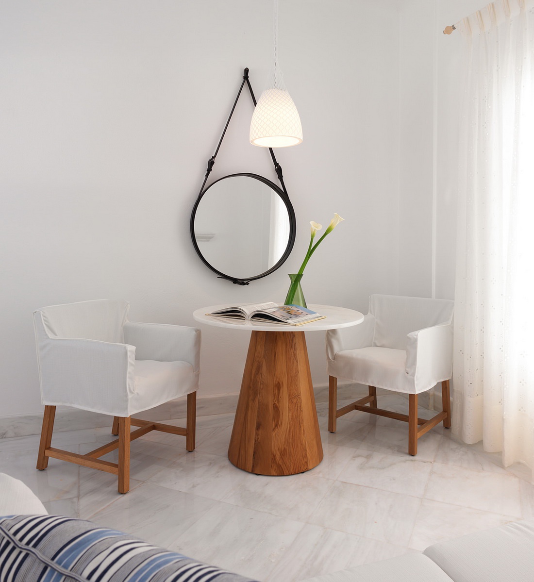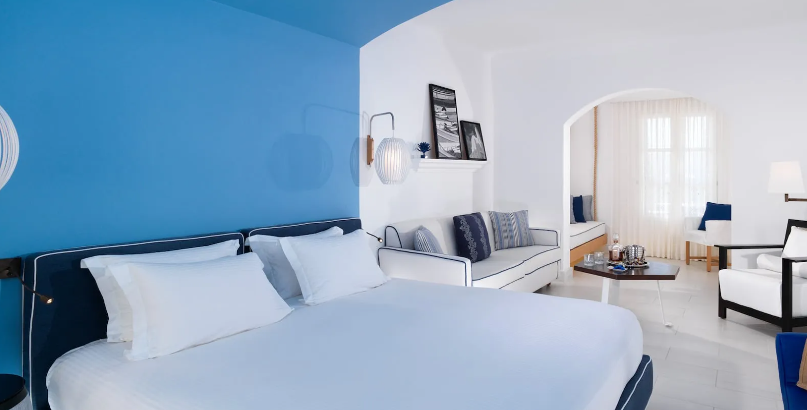 Проживання у готелі має високу ступінь комфортності. У номерах - стильні інтер'єри, витримані у світло-блакитних або світло-пісочних тонах, що поєднують сучасний дизайн та оригінальні елементи грецького декору з підлогами, викладеними мармуровою плиткою, витонченими меблями, арками в стилі острова Міконос, балконами та терасами з чудовим краєвидом на море, затоку Ayios Yiannis та пишний сад готелю.