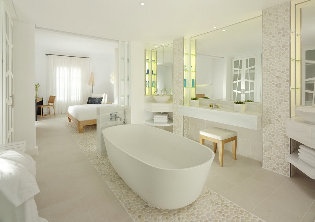 - Ванна кімната відкритого планування з окремою душовою/паровою кабіною та дизайнерською ванною